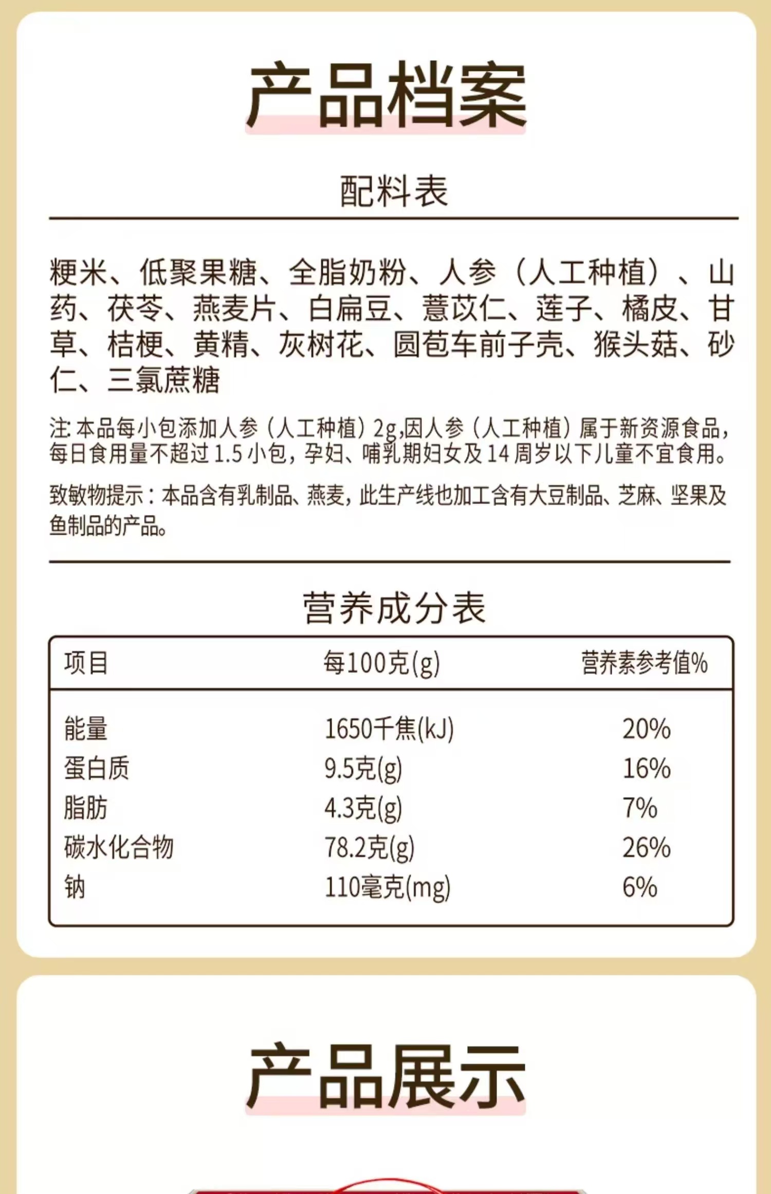 江中猴姑米稀人参米糊 15天 450g/15包/盒