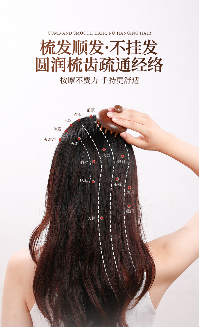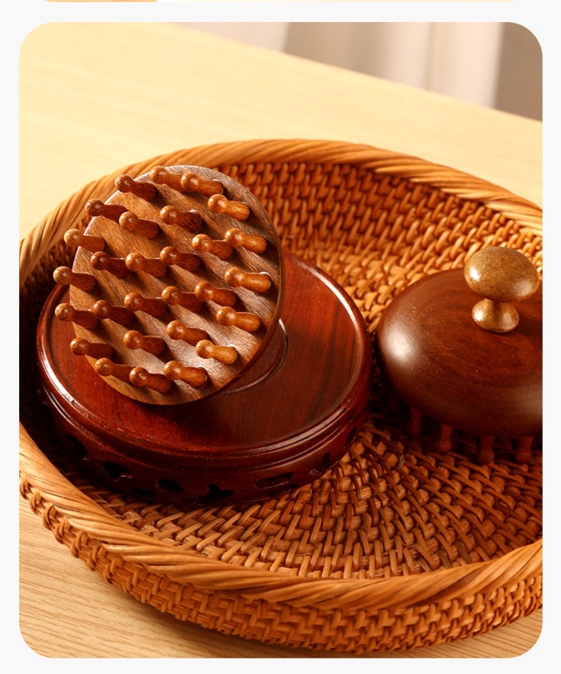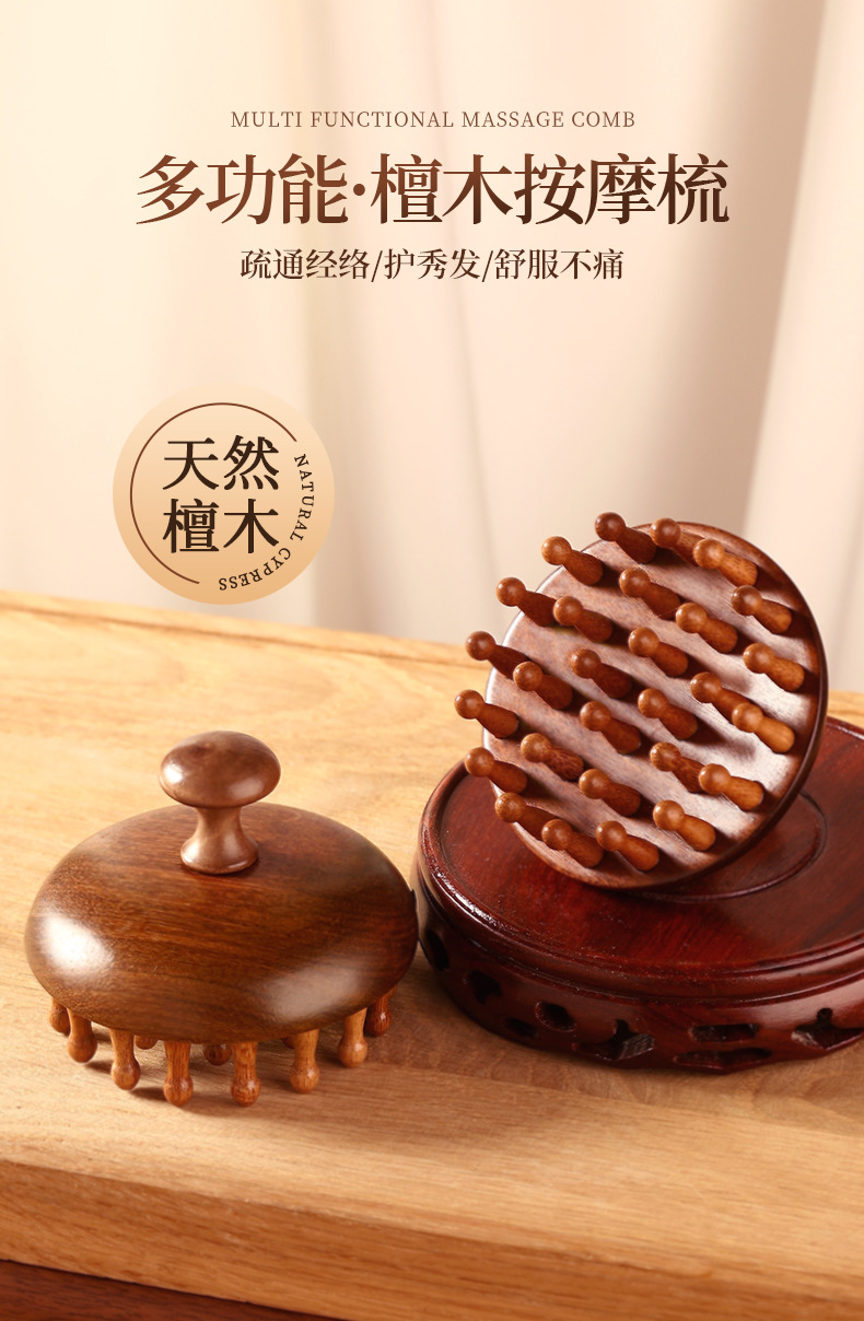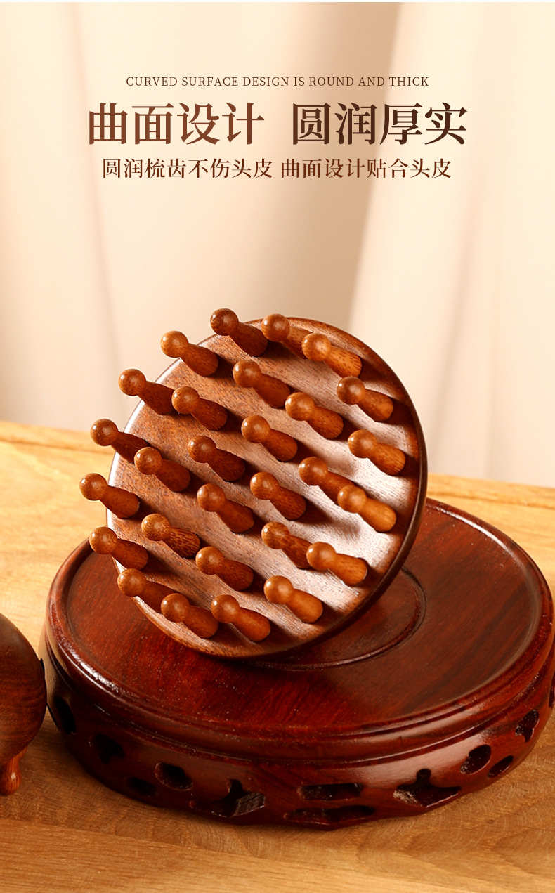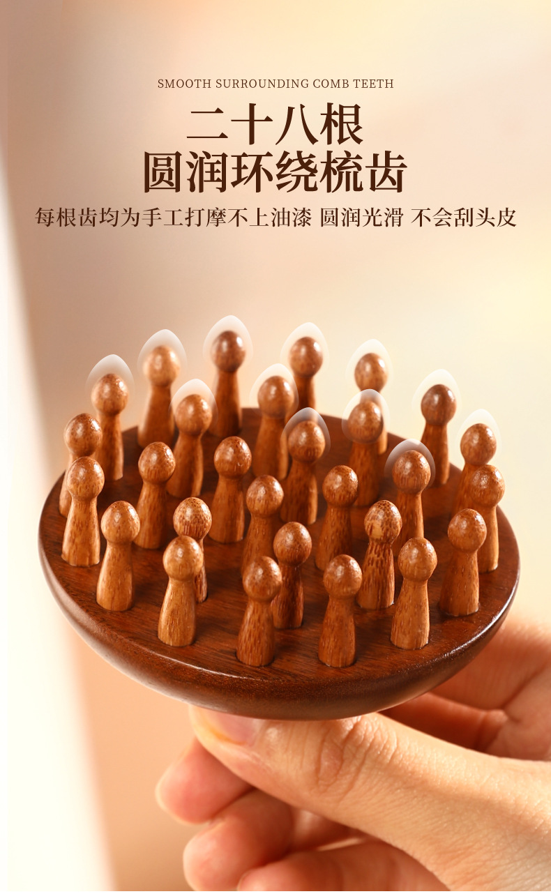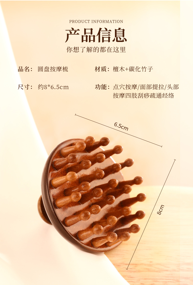 【多功能·檀木按摩梳】檀木圆盘按摩梳头皮经络梳天然檀木梳子女士专用家用头疗。ry