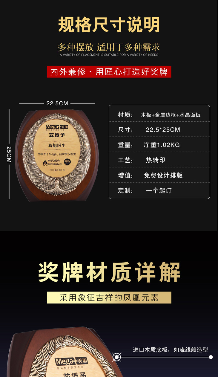 奖牌定制定做木质经销商授权牌荣誉牌牌匾定制王者荣耀巅峰赛奖牌