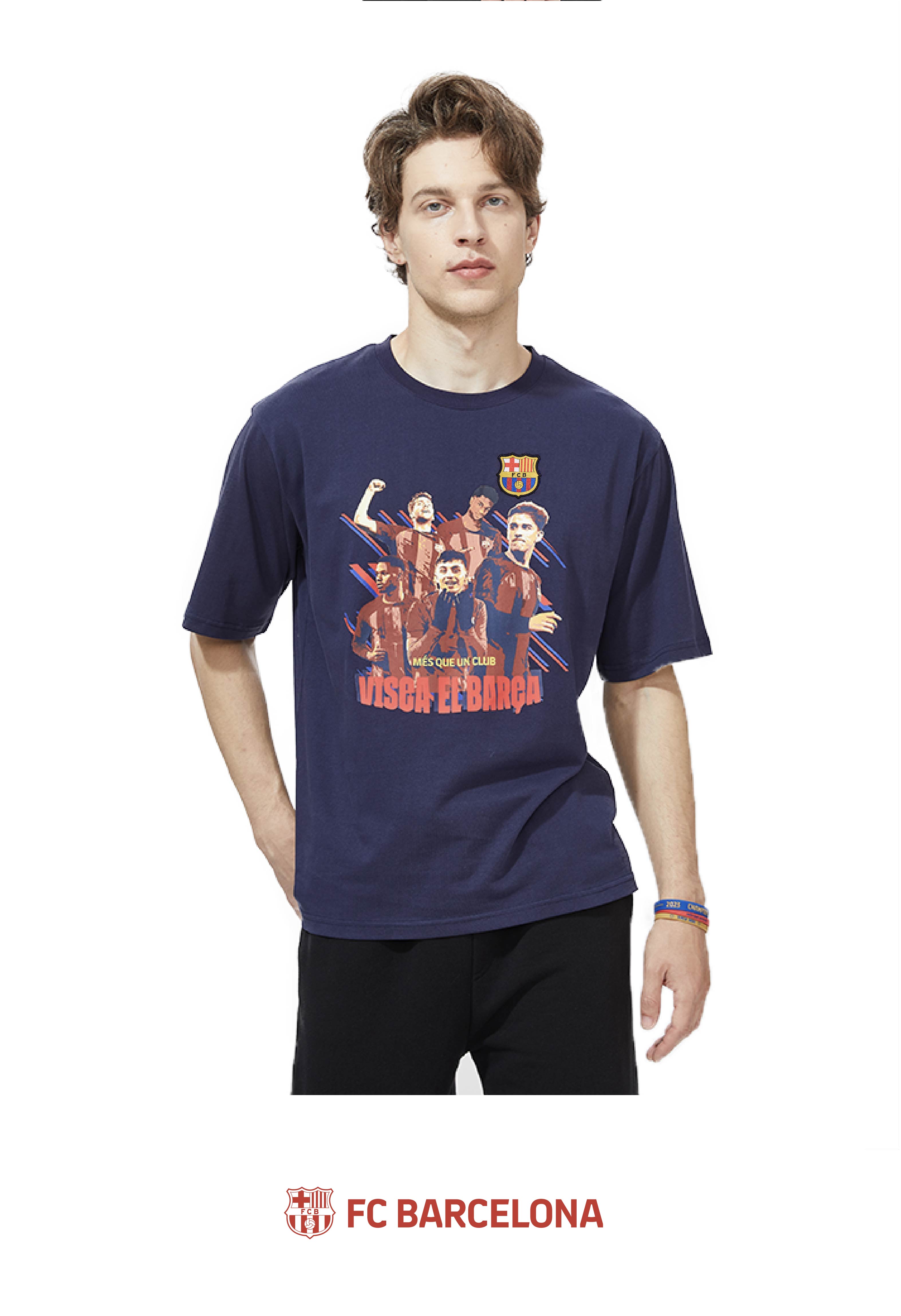 巴塞罗那俱乐部官方商品丨巴萨球员群像印花短袖助威T恤