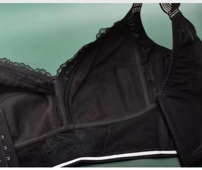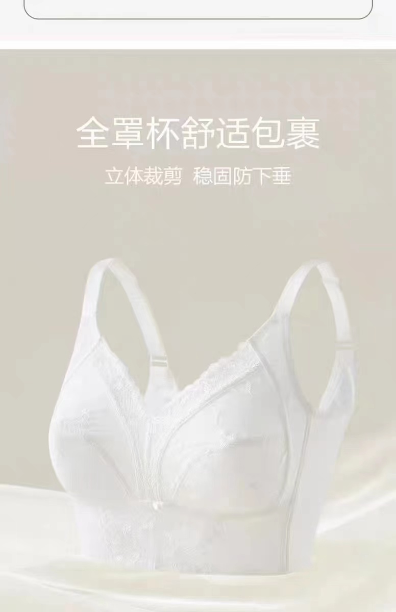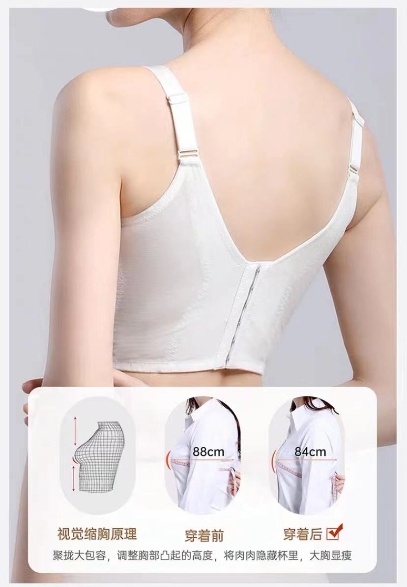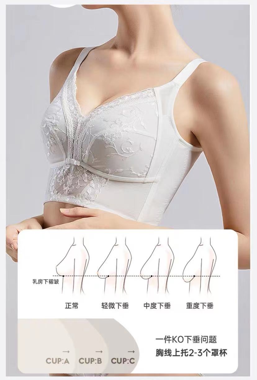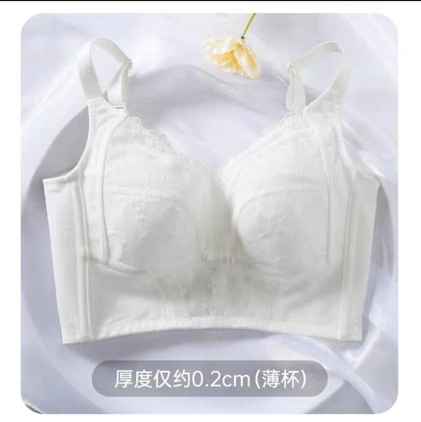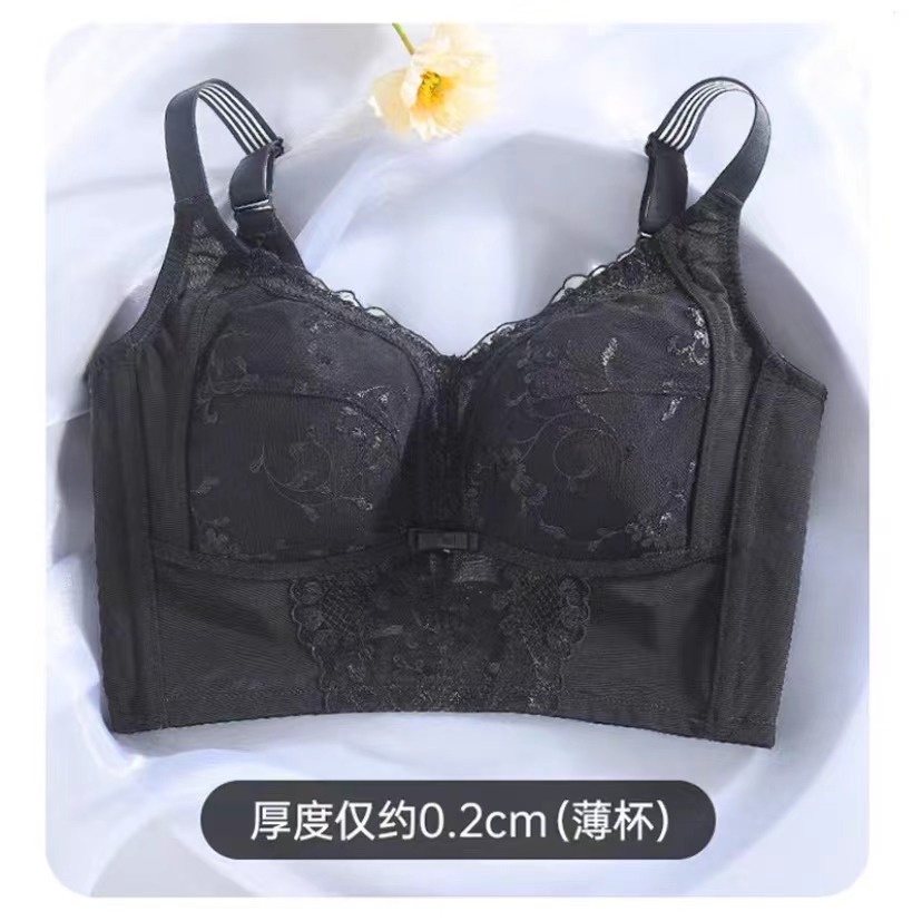 薄款6排扣调整型无钢圈大胸显小聚拢高侧收副乳蕾丝花边内衣女全罩杯【B04】