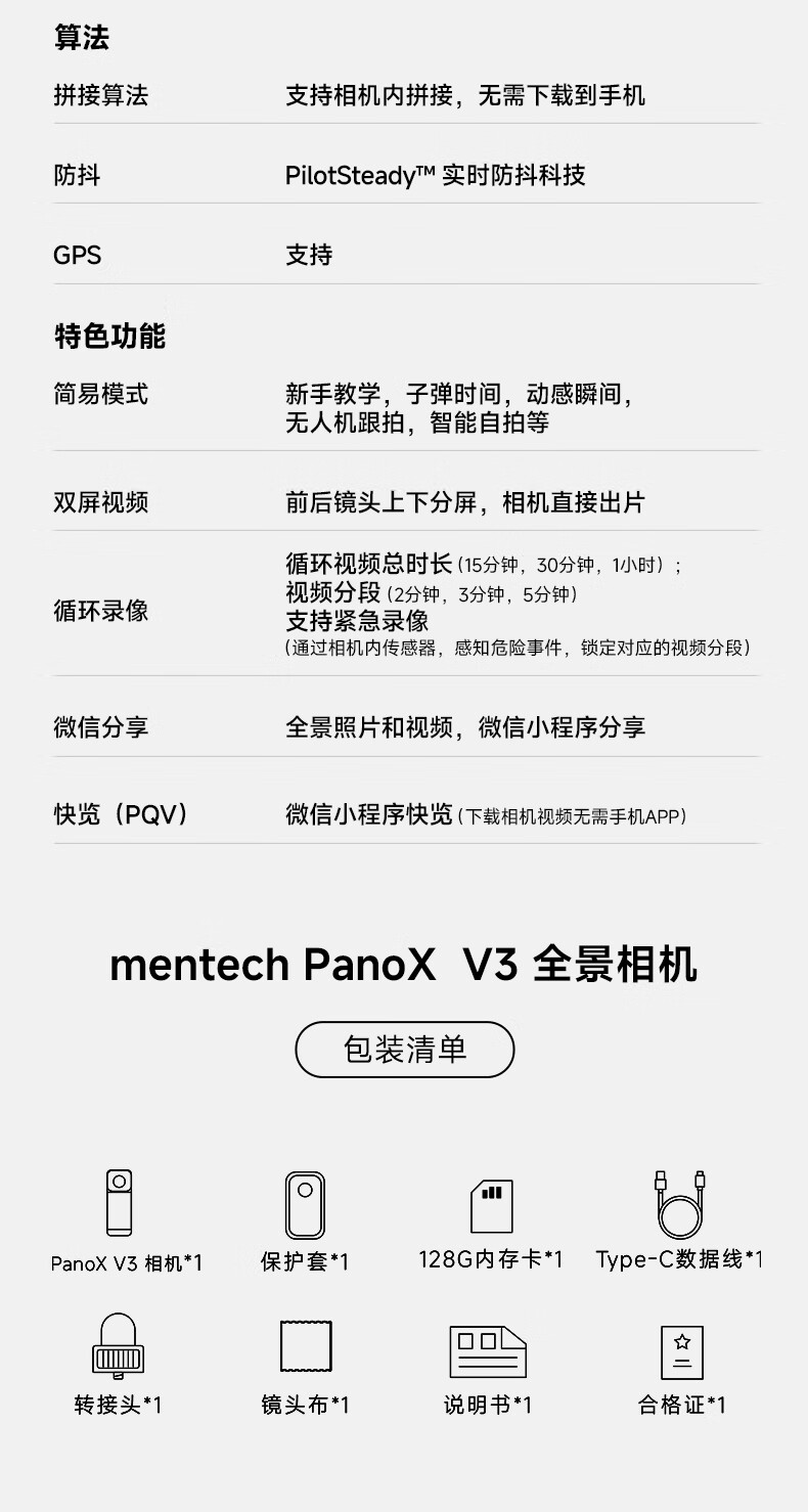 mentech Core Max 全景相机套装 PanoX V3
