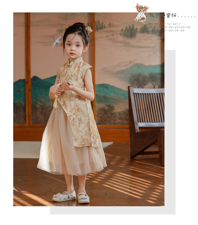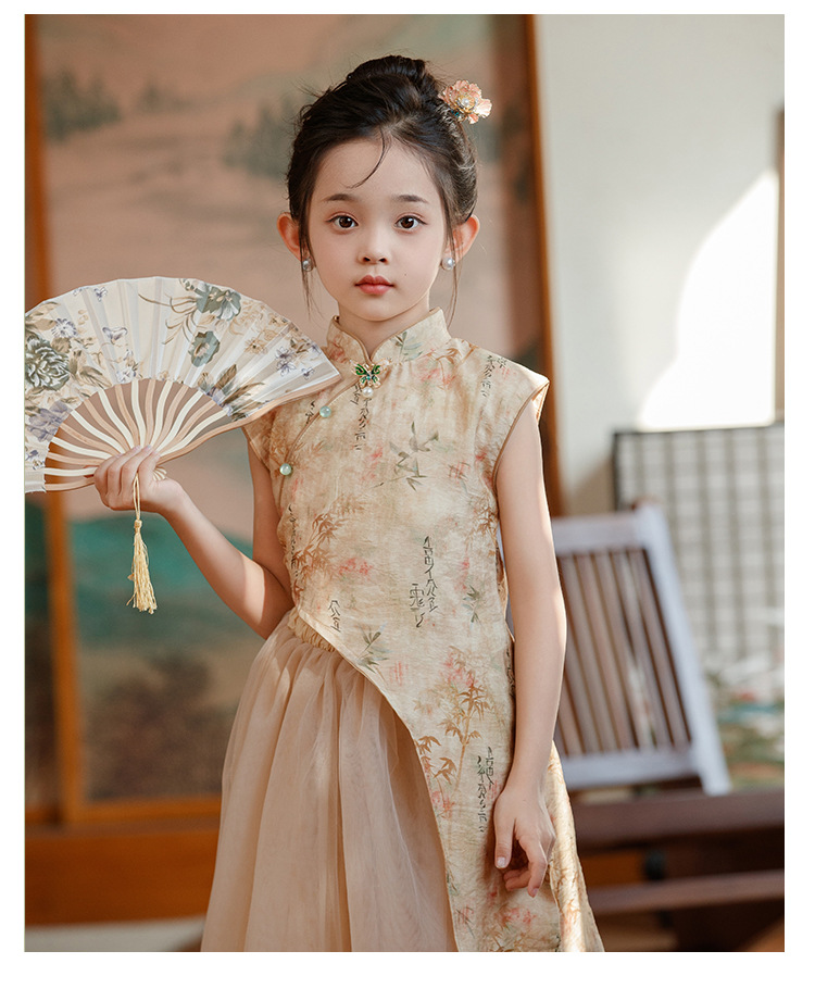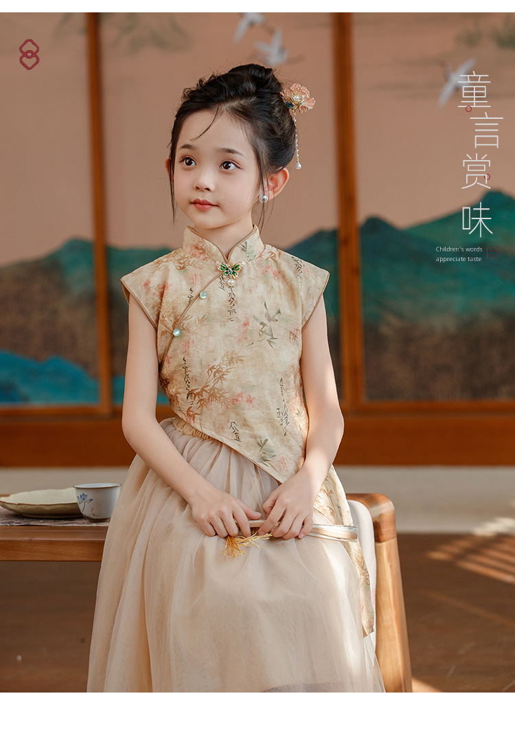 新中式旗袍女童中国风,古风汉服两件套国潮LSB- 2985