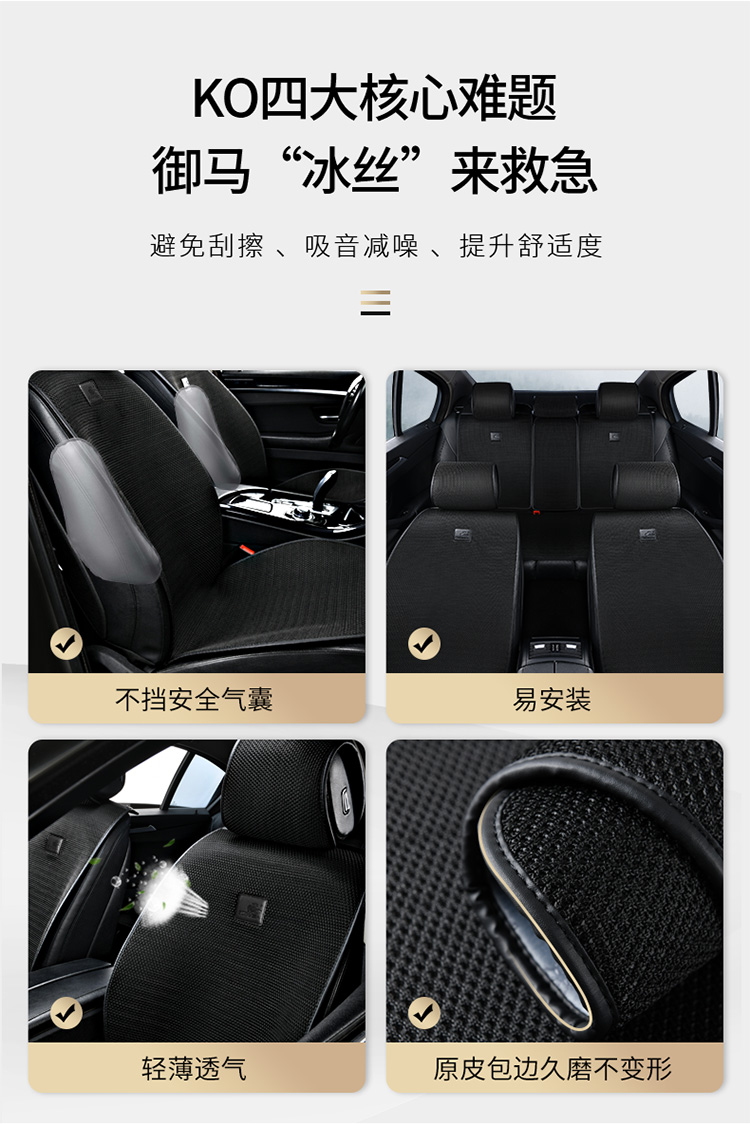 御马汽车坐垫夏季车垫四季通用透气通风冰丝凉垫超薄座垫亚麻座套