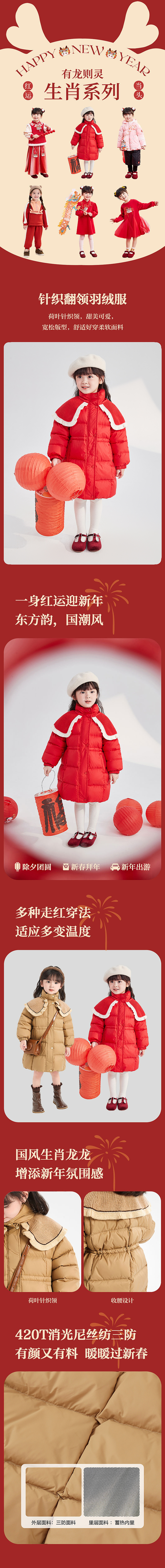 笛莎DESHA童装女童羽绒服2023冬季新款时尚款羽绒服