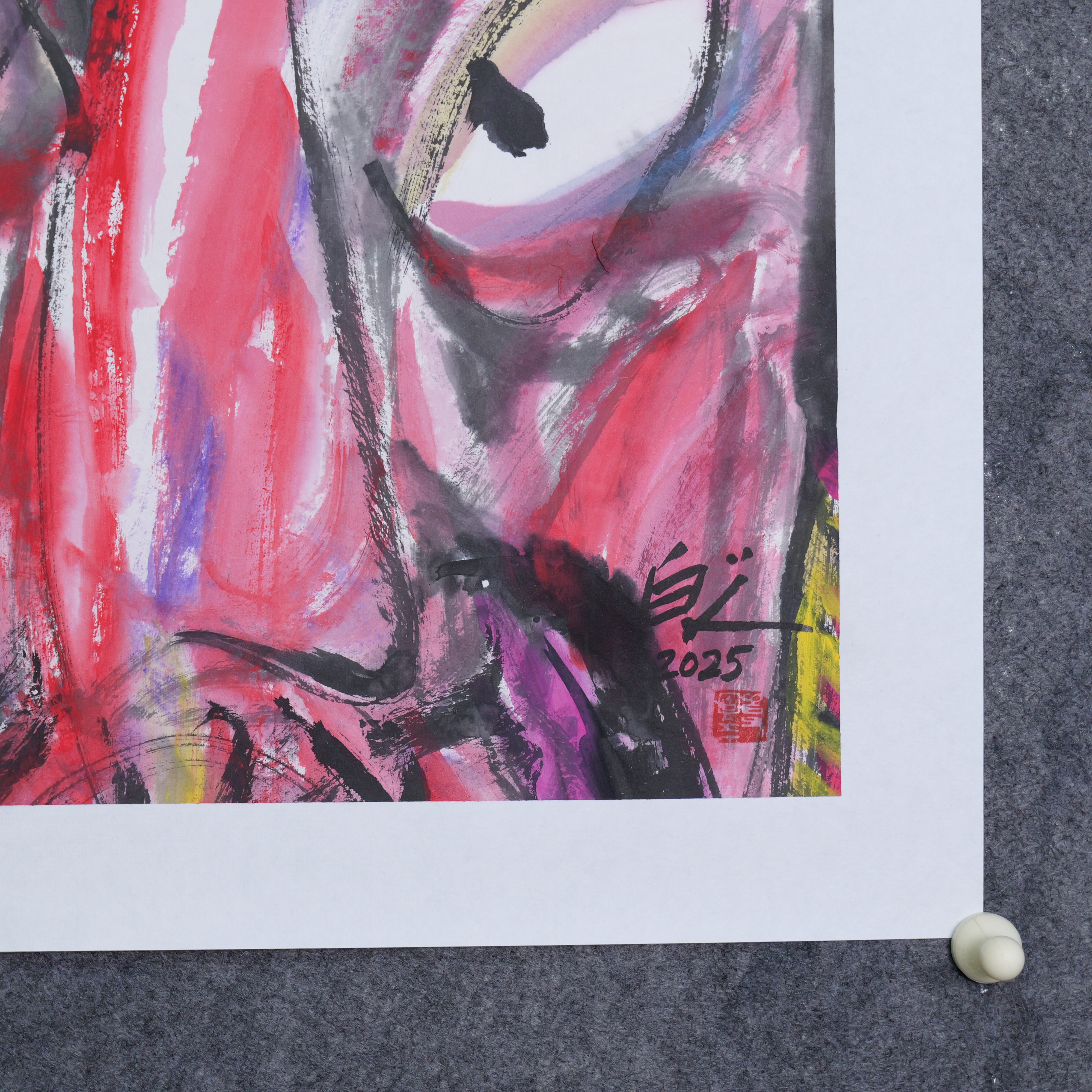许固令《脸谱之五》国画原作53CM*53CM 手绘宣纸脸谱系列斗方作品【GH0484】