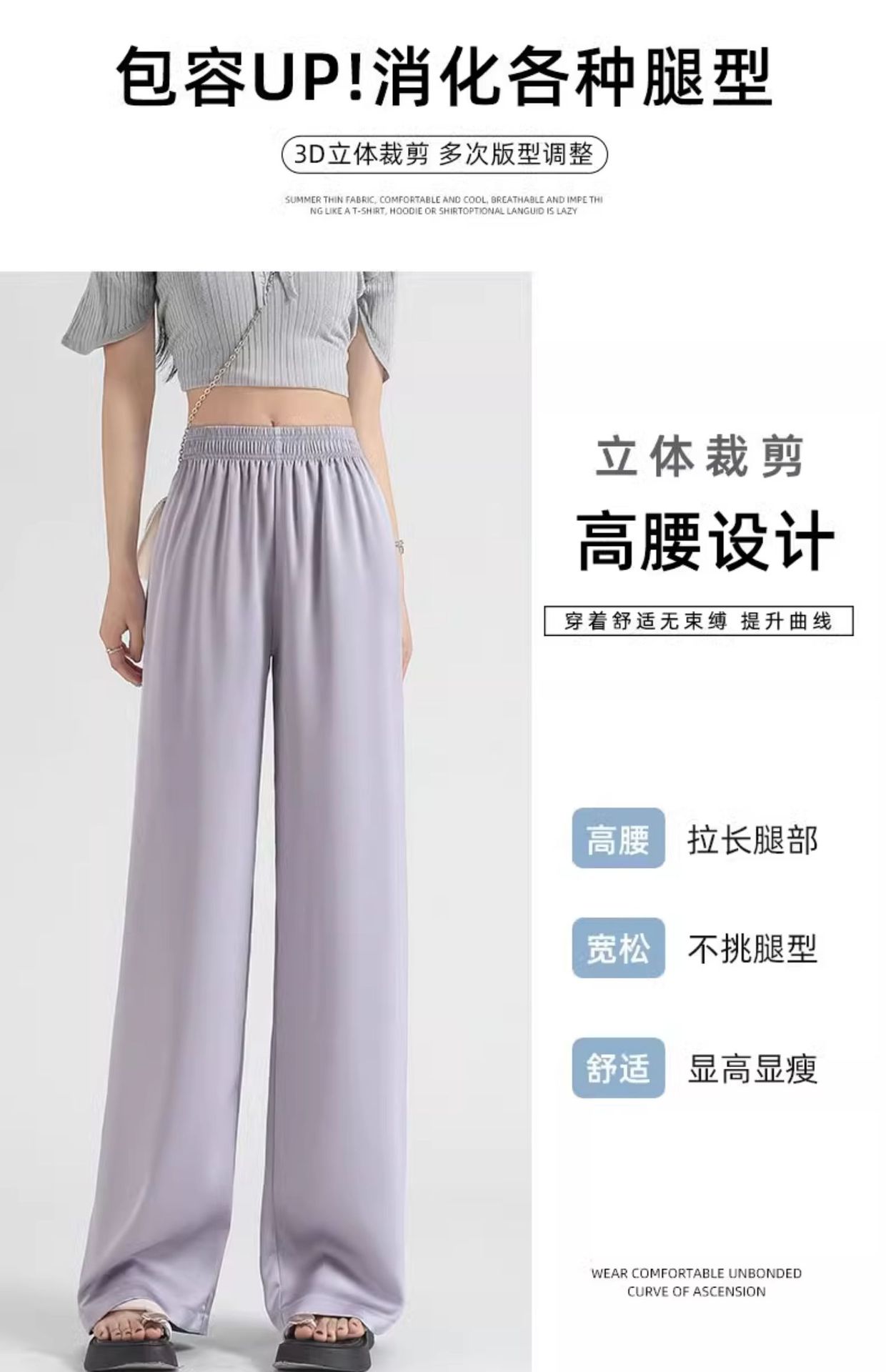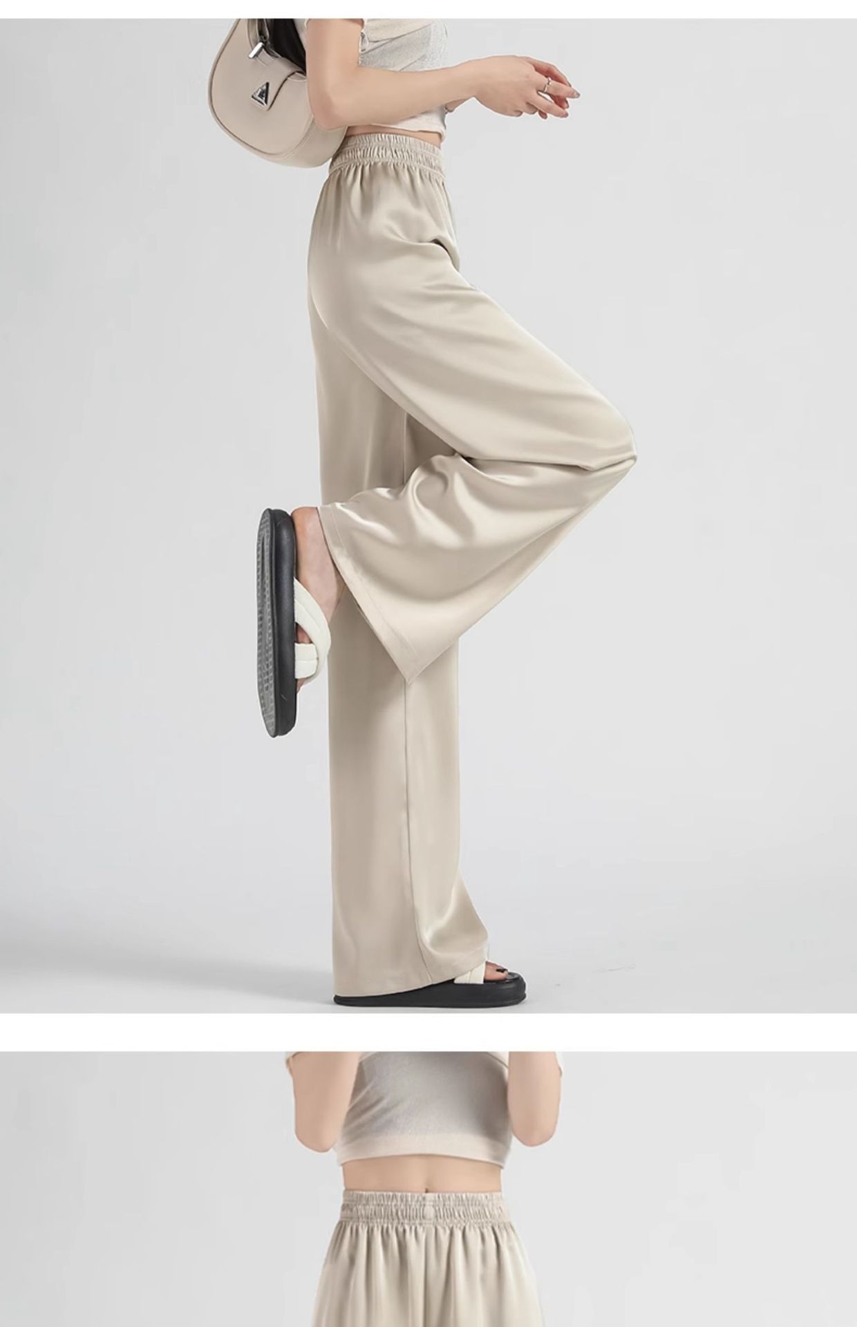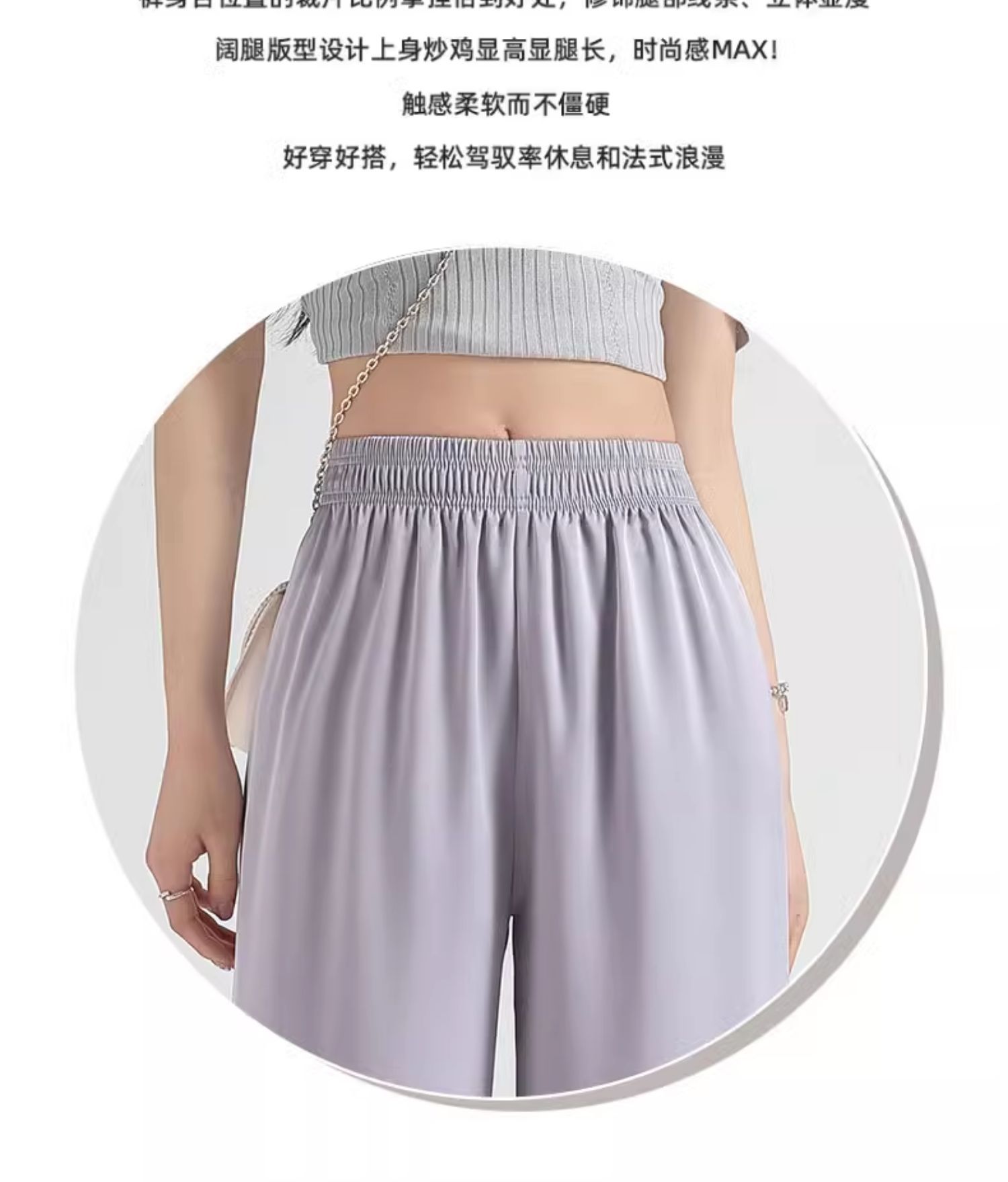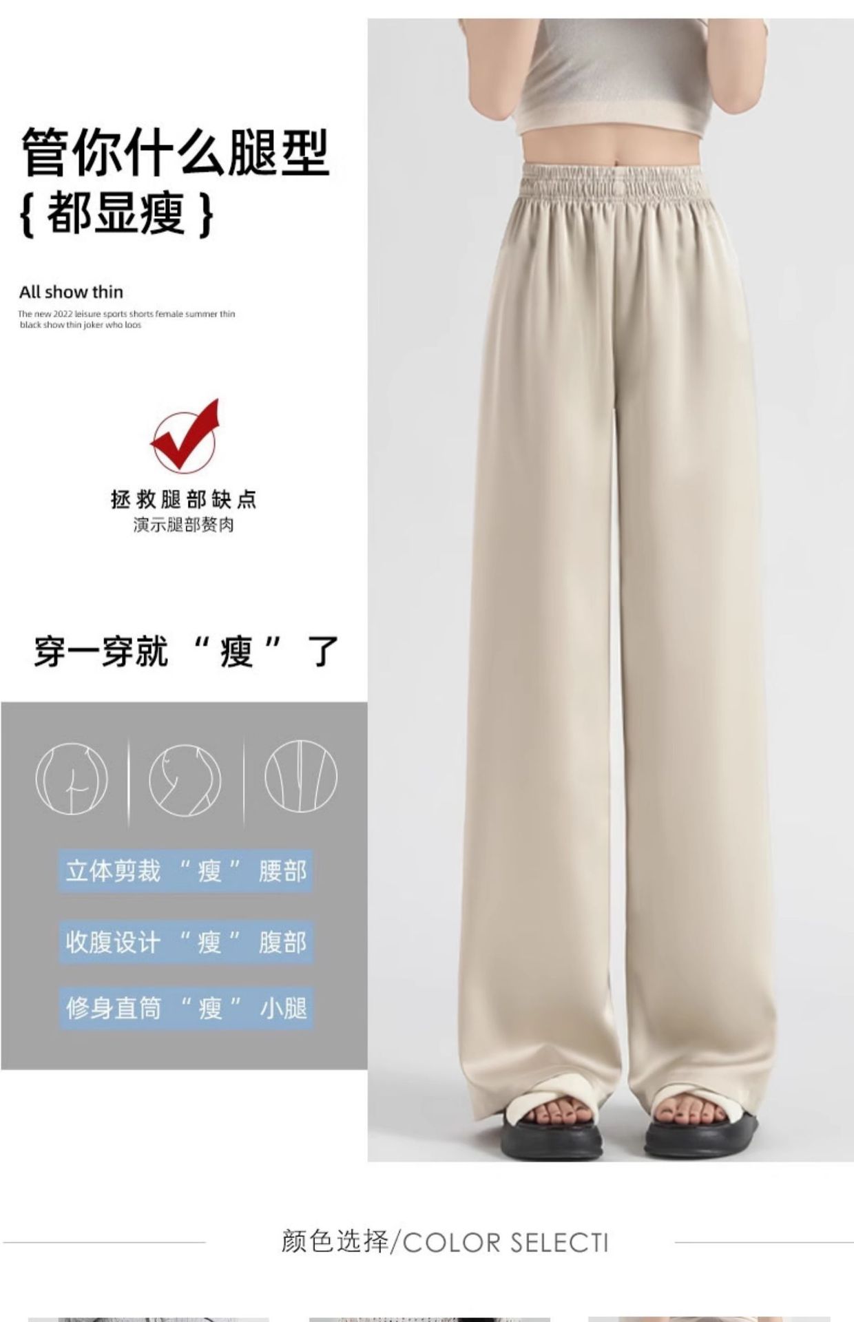 夏季薄款仿醋酸缎面高腰垂感阔腿裤 清凉防晒防蚊休闲直筒裤