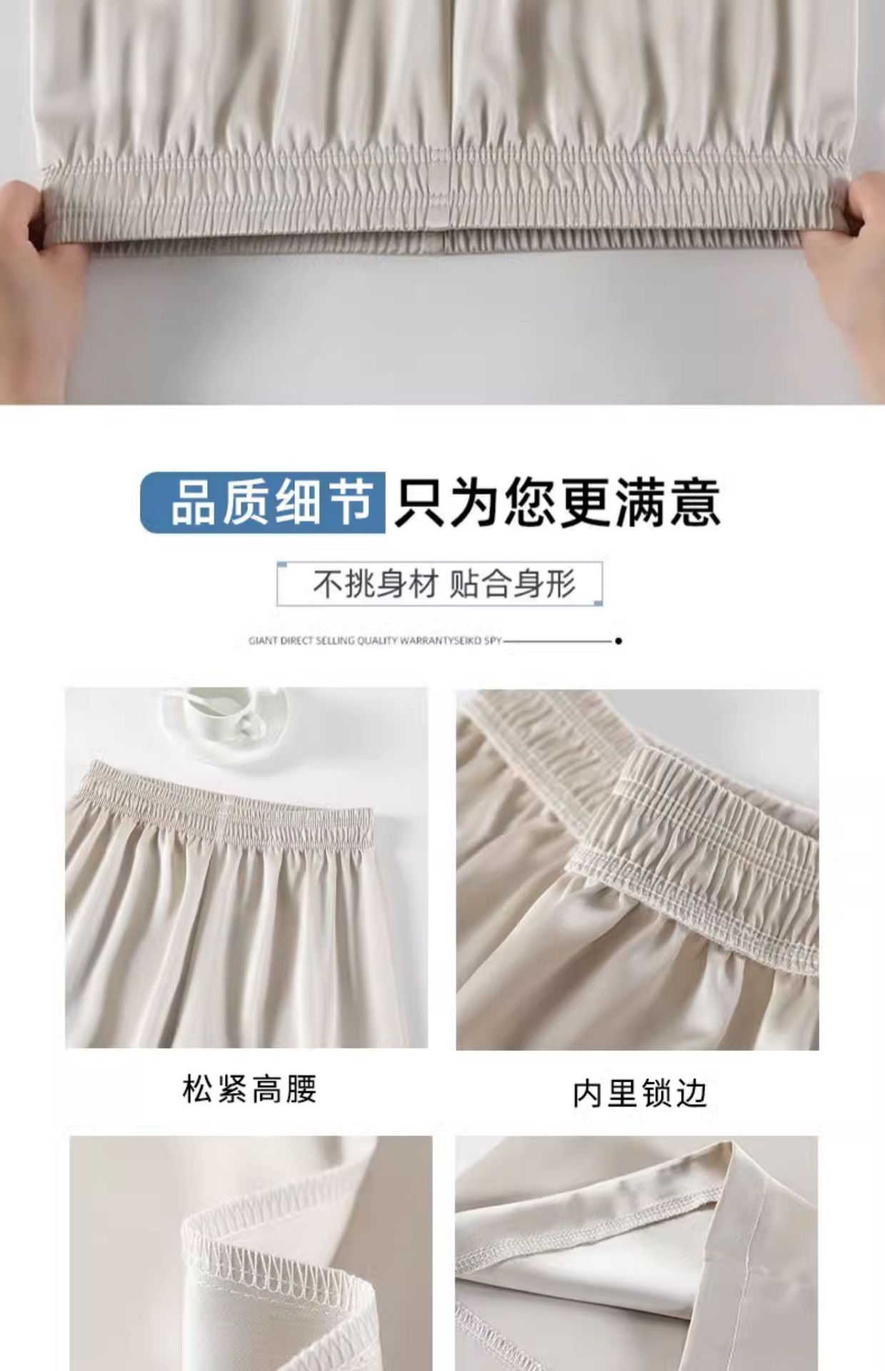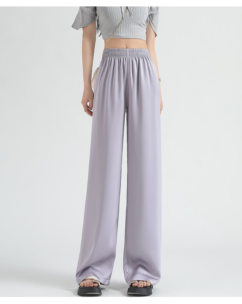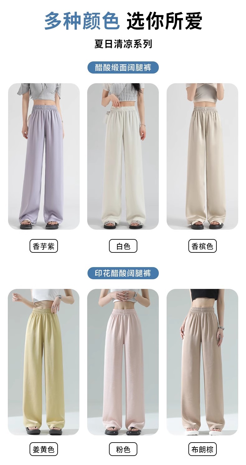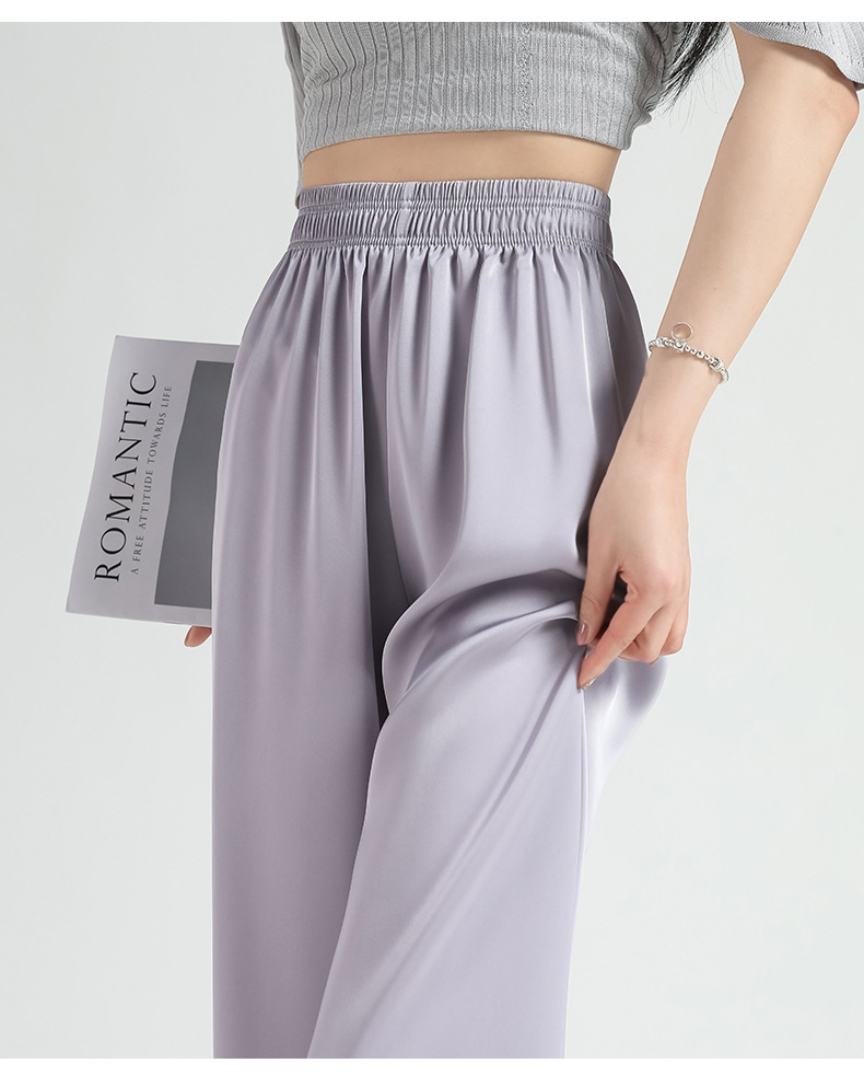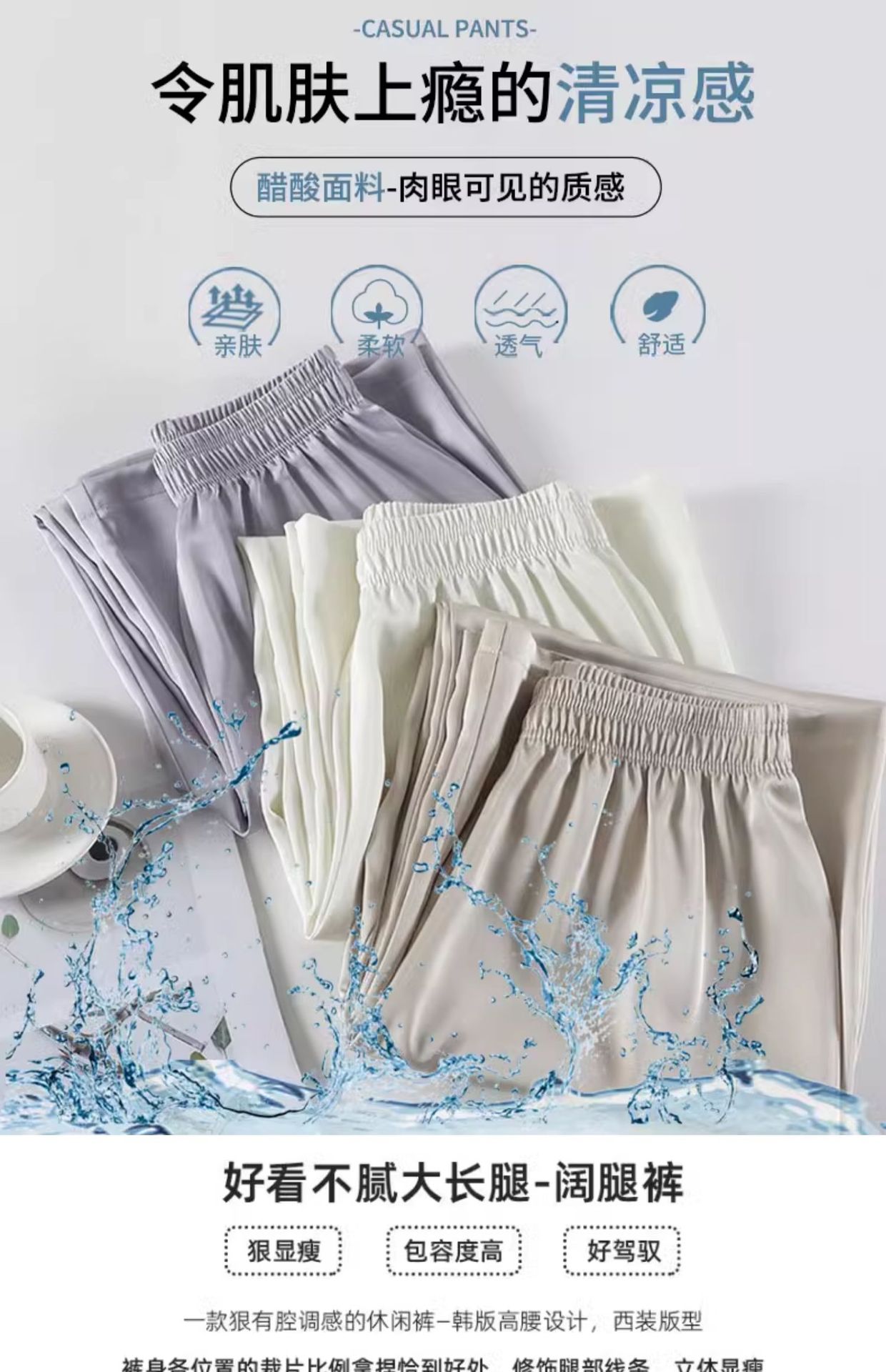 夏季薄款仿醋酸缎面高腰垂感阔腿裤 清凉防晒防蚊休闲直筒裤