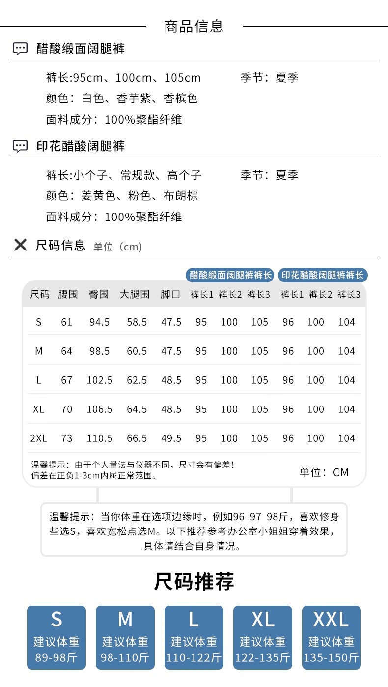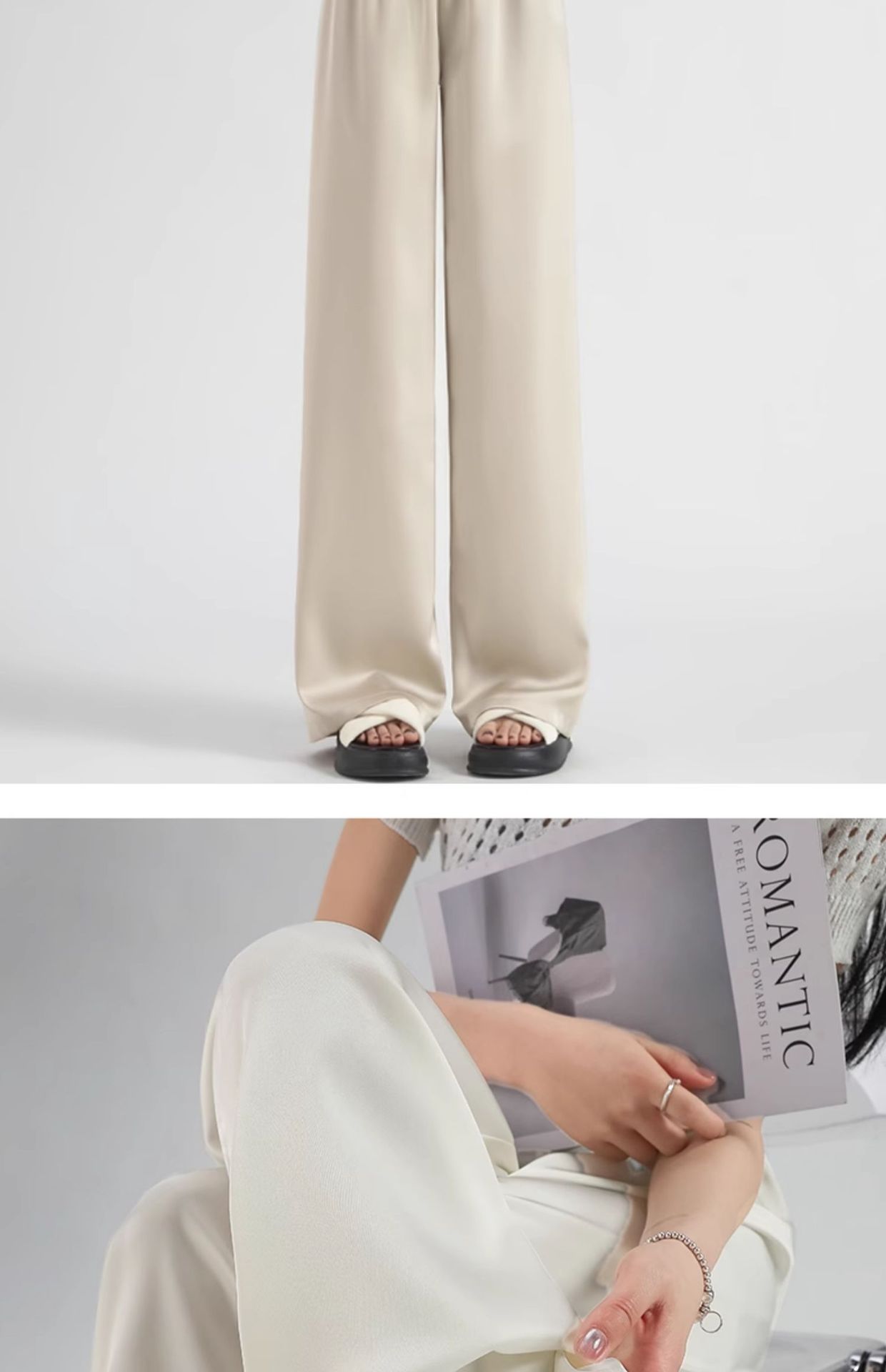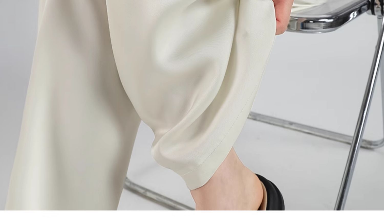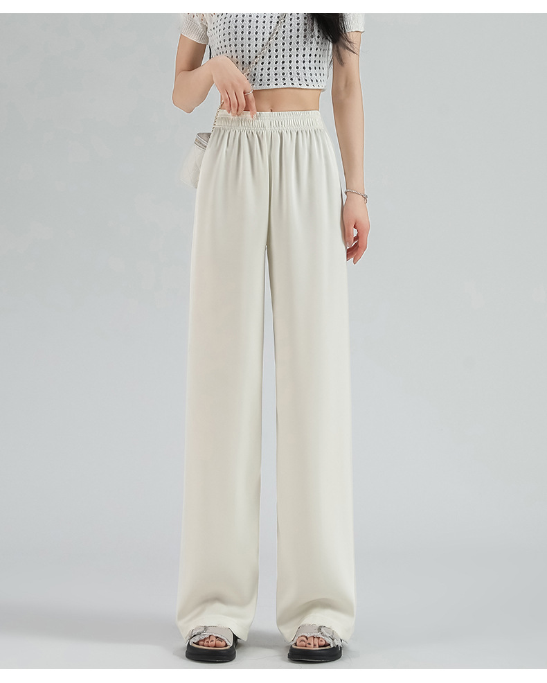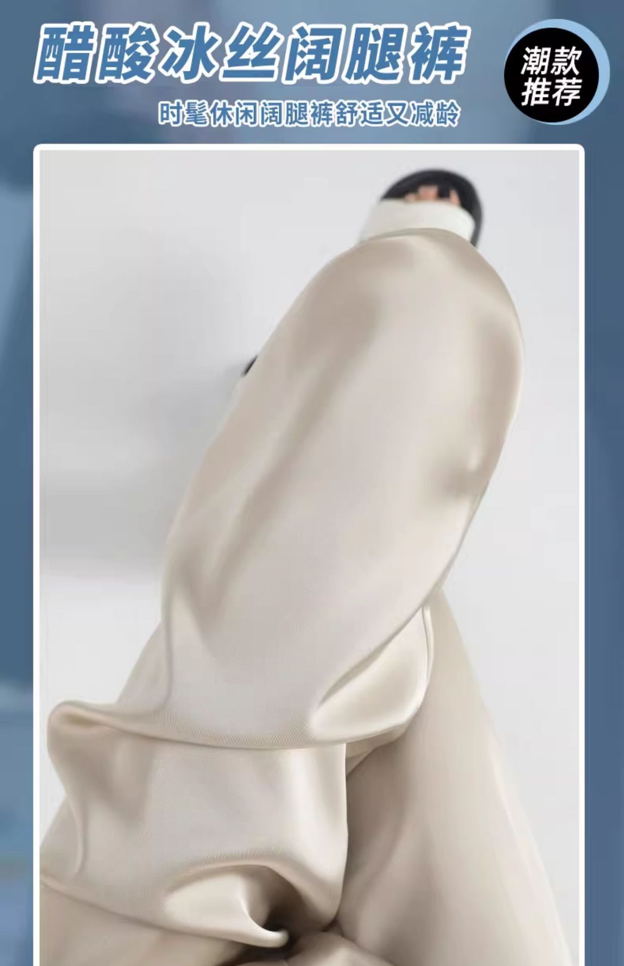 夏季薄款仿醋酸缎面高腰垂感阔腿裤 清凉防晒防蚊休闲直筒裤