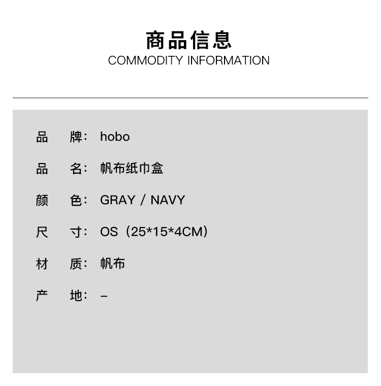 hobo TISSUE HOLDER HEAVY CANVAS日本特制染色6号厚质帆布纸巾盒