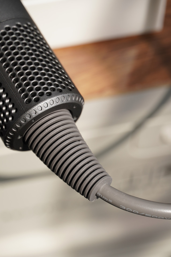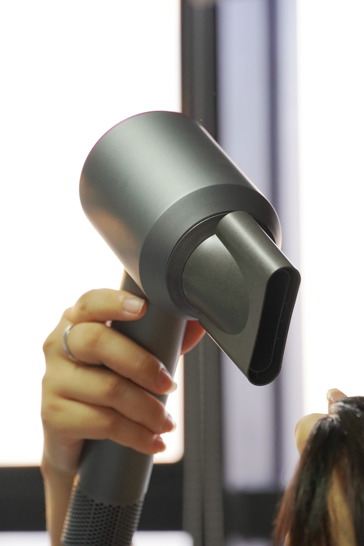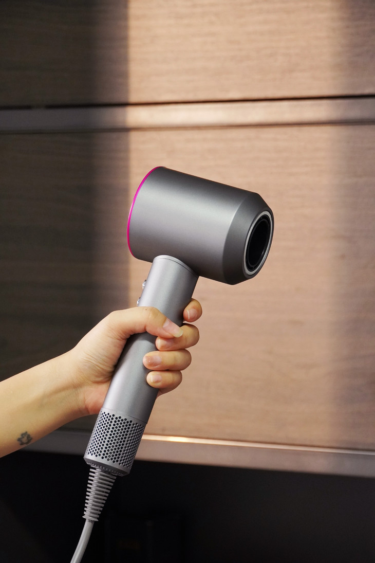 这款吹风机还从多重围度降低了风声啸叫 改善了传统扇叶风筒的噪音问题 机身整体设计小巧又轻便,符合人体工学的手柄设计 单手吹个三五分钟毫无压力,差旅携带也照样轻松方便