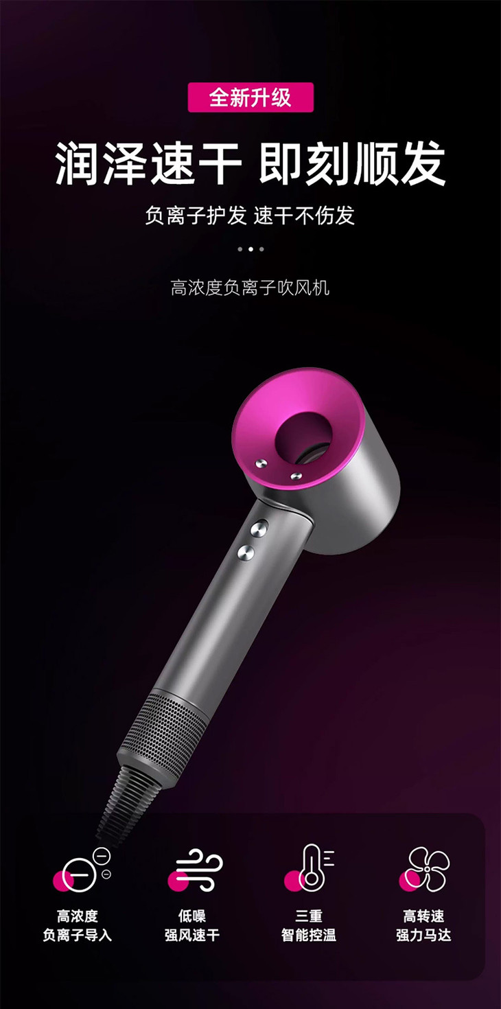 性能近似于两三千块的戴*森,但价格却真真的只有尾巴上的两个零头!!! 长发厚发体验感强多了,低温速干 比普通吹风机更快,对发质更好,带来好久不见的顺滑光泽感 但性价比却又那么🐮 在同性能的国产“贵替”还在要价两三百、五六百的时候 我们79直接秒了价格战❗ 💥0.01加赠一枚磁吸式顺滑风嘴,顺发收尾防飞翘,可吹内扣,各种造型轻松拿捏👇🏻