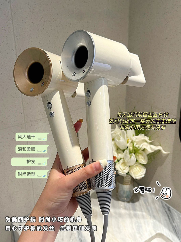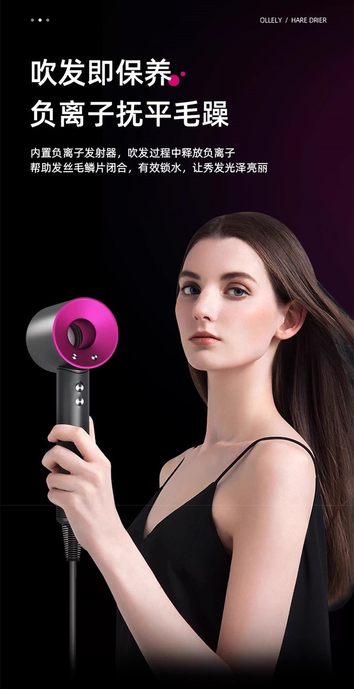 而我们这支同款 取其原版精华,可以中和发丝上的负电荷 不仅干发速度比普通吹风机快上了一倍 也不需要担心风温过高, 恒温技术不烫不烤,来挽救头发根本 吹干后的头发明显发质有所提升,不打结不毛糙,和多上了一层发膜精油一样柔顺有效!!