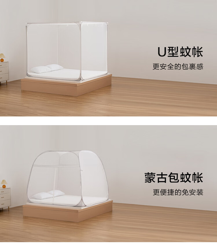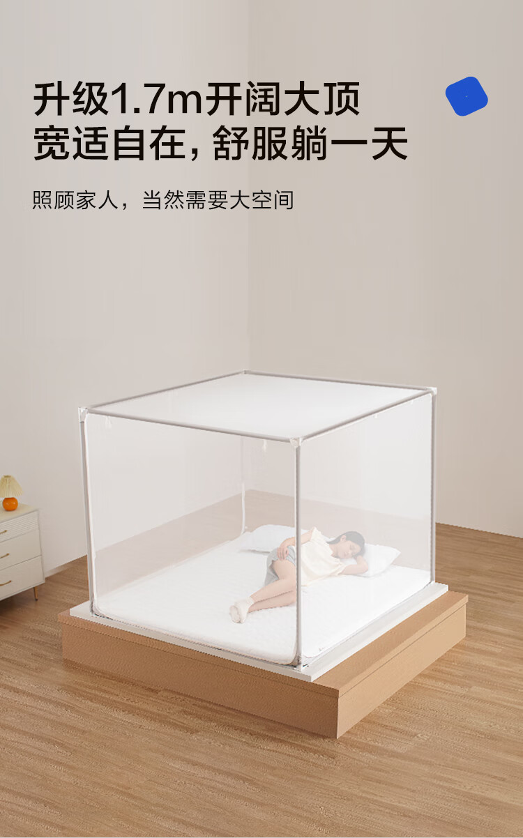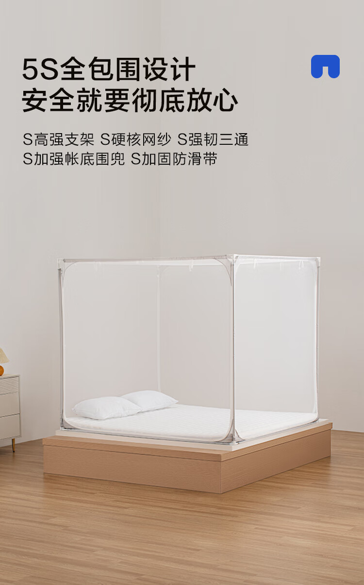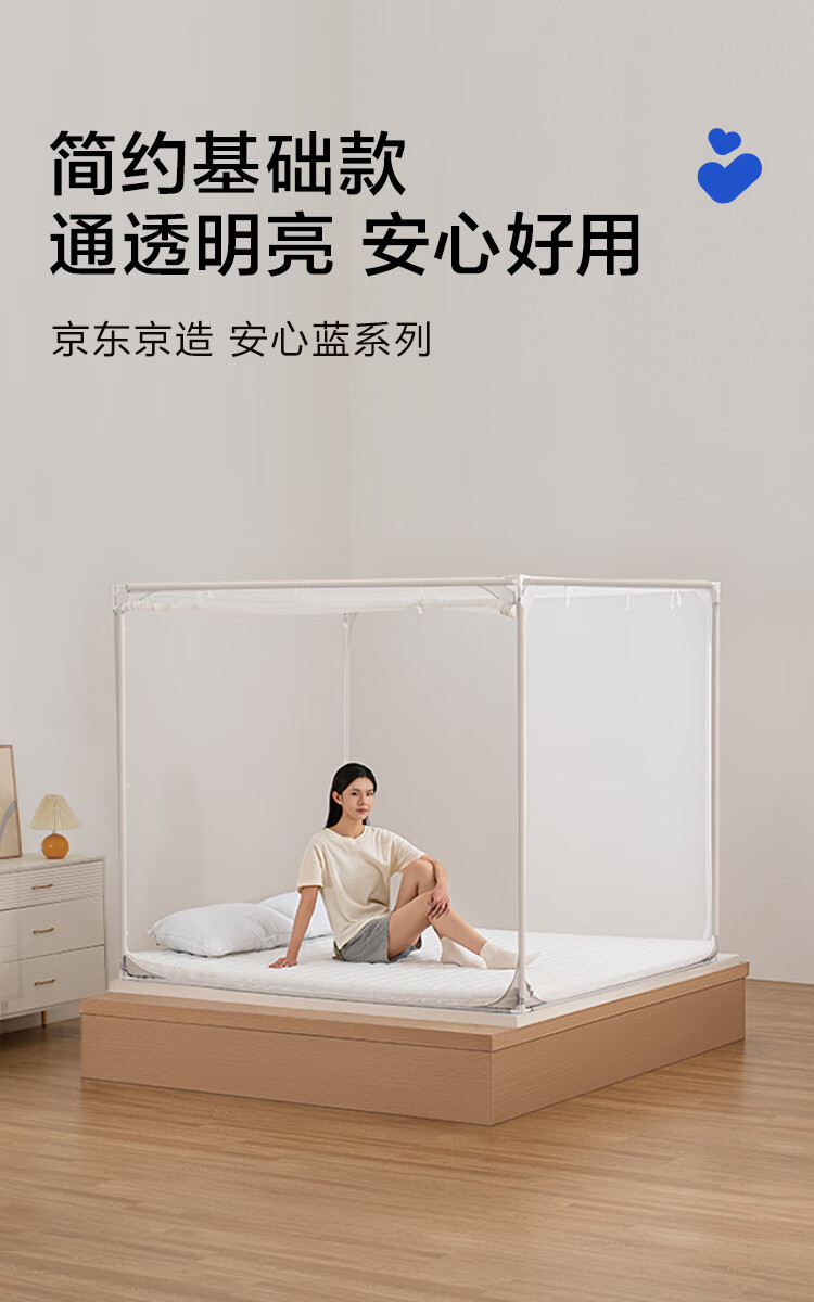 京东京造安心蓝基础款蒙古包蚊帐母婴儿免安装折叠家用防摔蚊帐 1.5*2米床防摔蚊帐