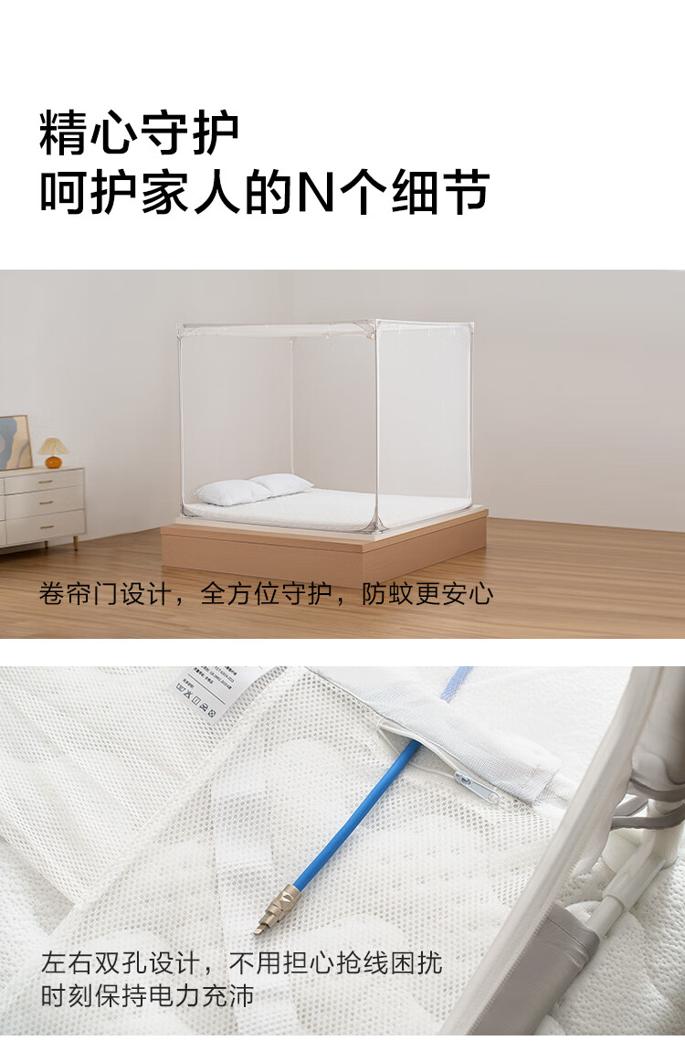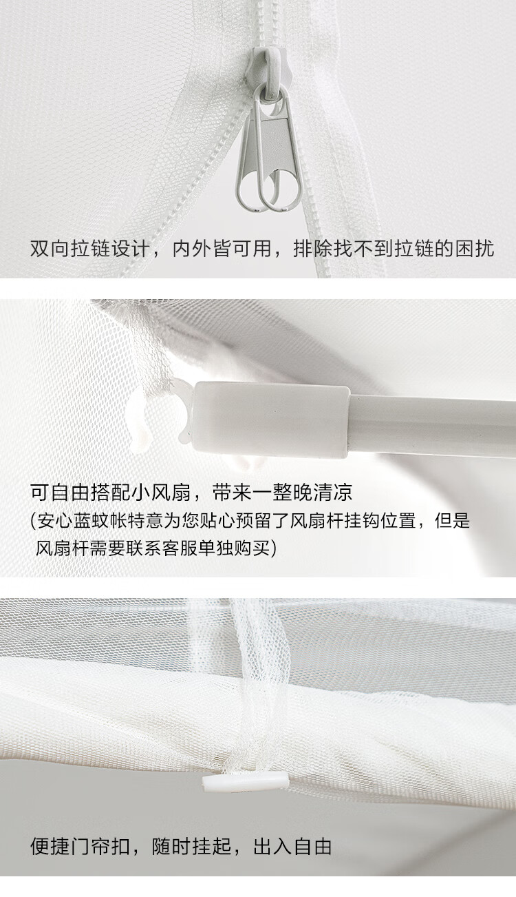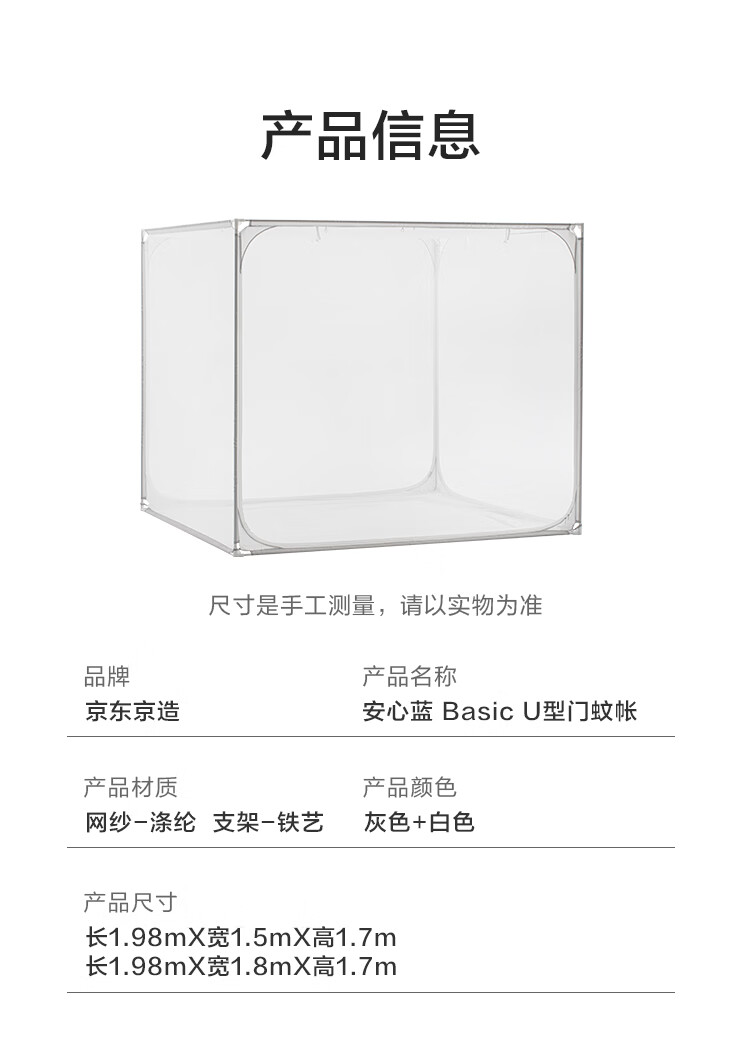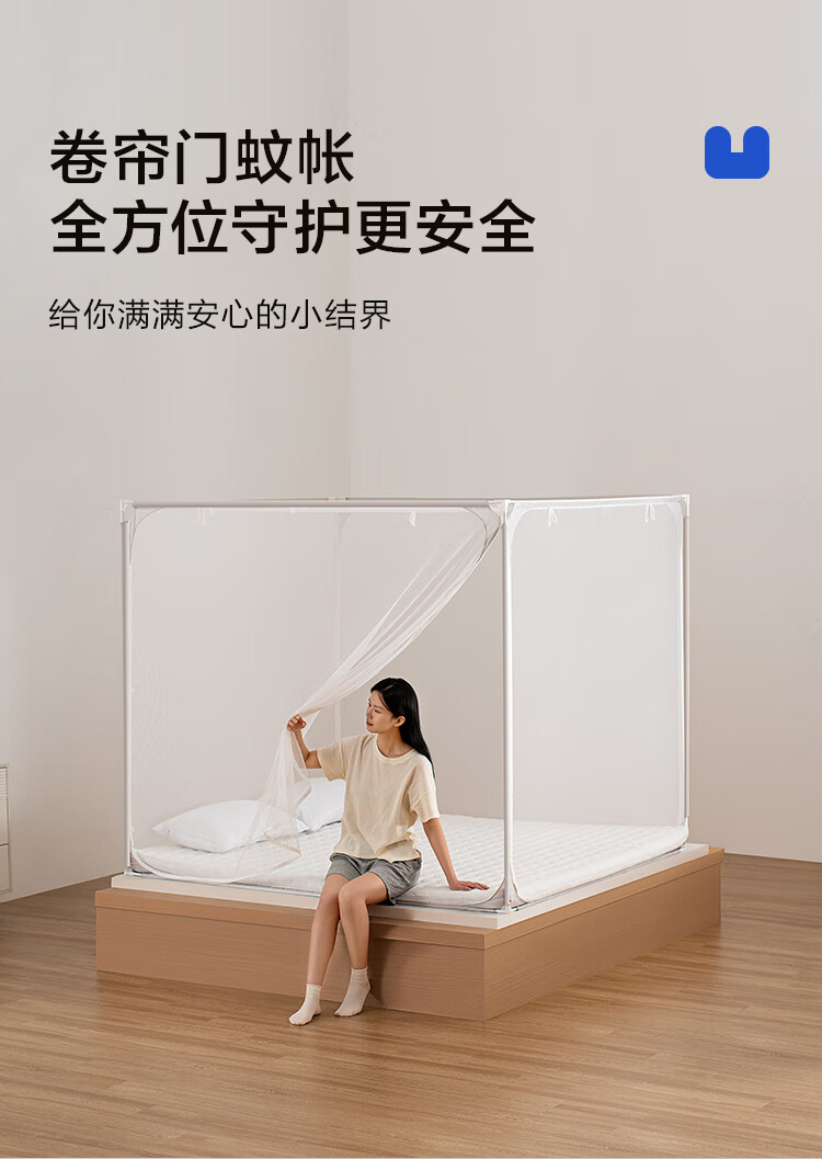 京东京造安心蓝基础款蒙古包蚊帐母婴儿免安装折叠家用防摔蚊帐 1.5*2米床防摔蚊帐