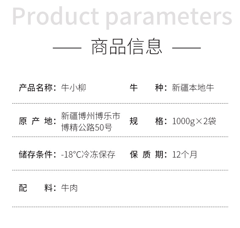 【冷冻】【雪山牛谷】牛小柳1kg*2袋炒菜辅食鲜嫩多汁原切牛肉家庭装