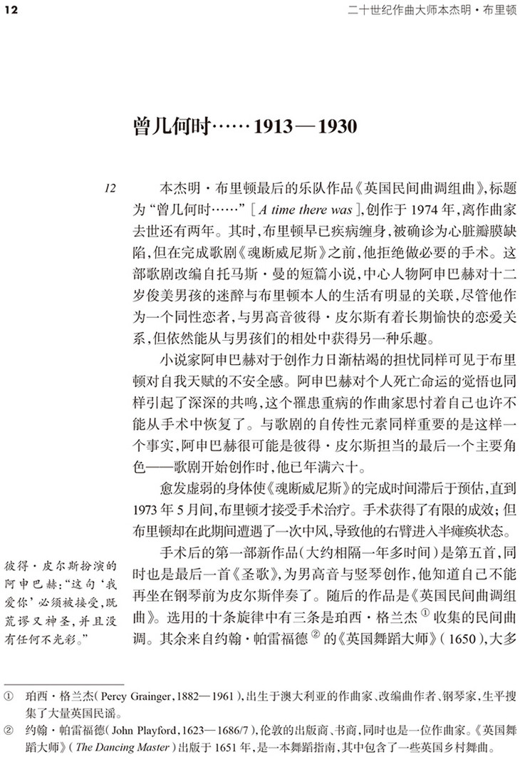 本系列图书是二十世纪作曲大师的传记类作品,引进自英国费顿出版公司,共12本图书,包括美国先锋派作曲家、披头士乐队、本杰明·布里顿、加布里埃·福雷、欣德米特,哈特曼和亨策、爵士豪杰、极简主义作曲家、波兰复兴主义作曲家、弗朗西斯·普朗克、阿尔弗雷德·施尼特克、让·西贝柳斯和克劳德·德彪西。与绝大多数的作曲家、音乐家传记不同,本系列图书的作者大都并非从事音乐研究的学者,除了一两位职业乐评人之外,其余大部分作者都是活跃在传媒领域的媒体人,如制片人、导演、杂志策划等,他们对这些二十世纪作曲大师的分析来源于他们对二十世纪这个在音乐断代中与众不同的时代的独特感悟。他们的叙事材料丰富精彩,他们的语言既易于接受又经得起品味推敲,他们多彩的诠释本身也是关于二十世纪音乐家接受反馈的独特景观。