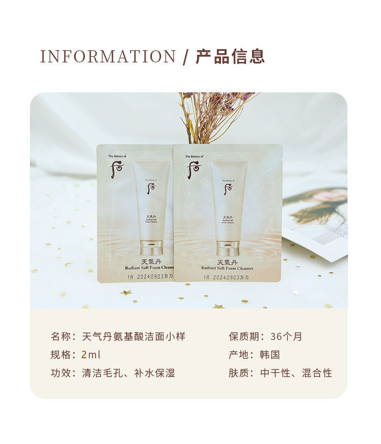 【爆款超低价预售 急单慎拍】韩国whoo后天气丹洗面奶氨基酸洗面奶小样2ml光彩泡沫洁面膏新款