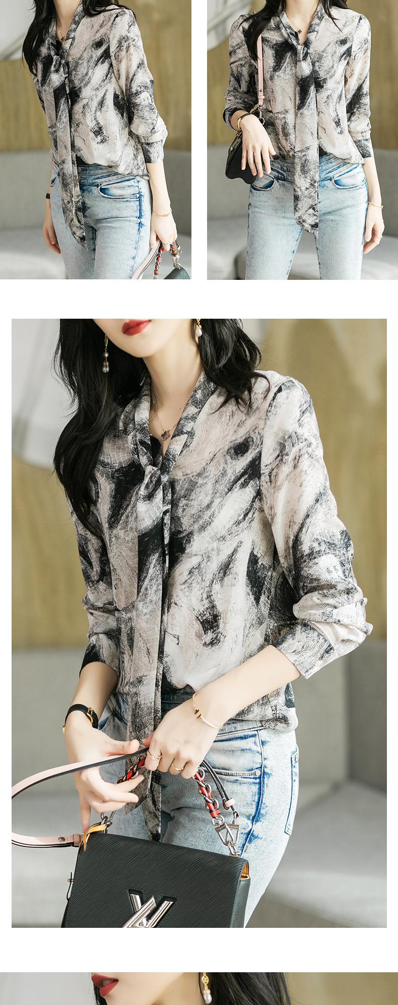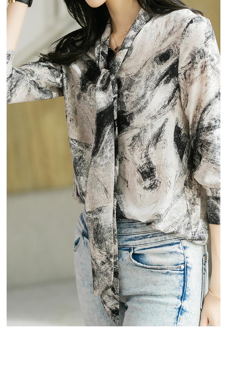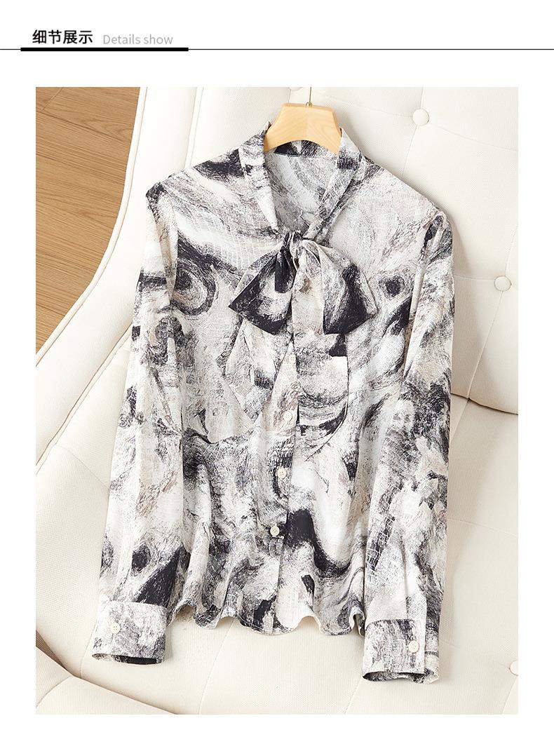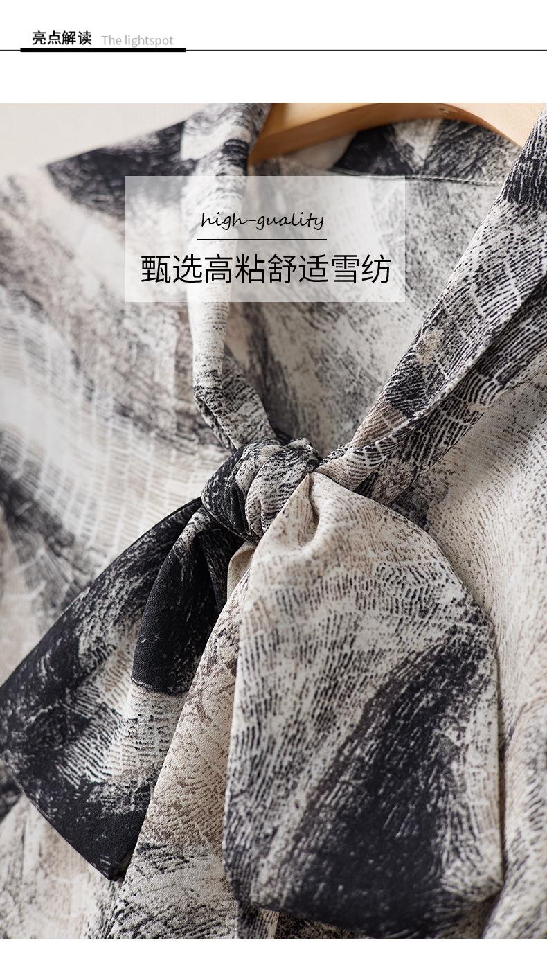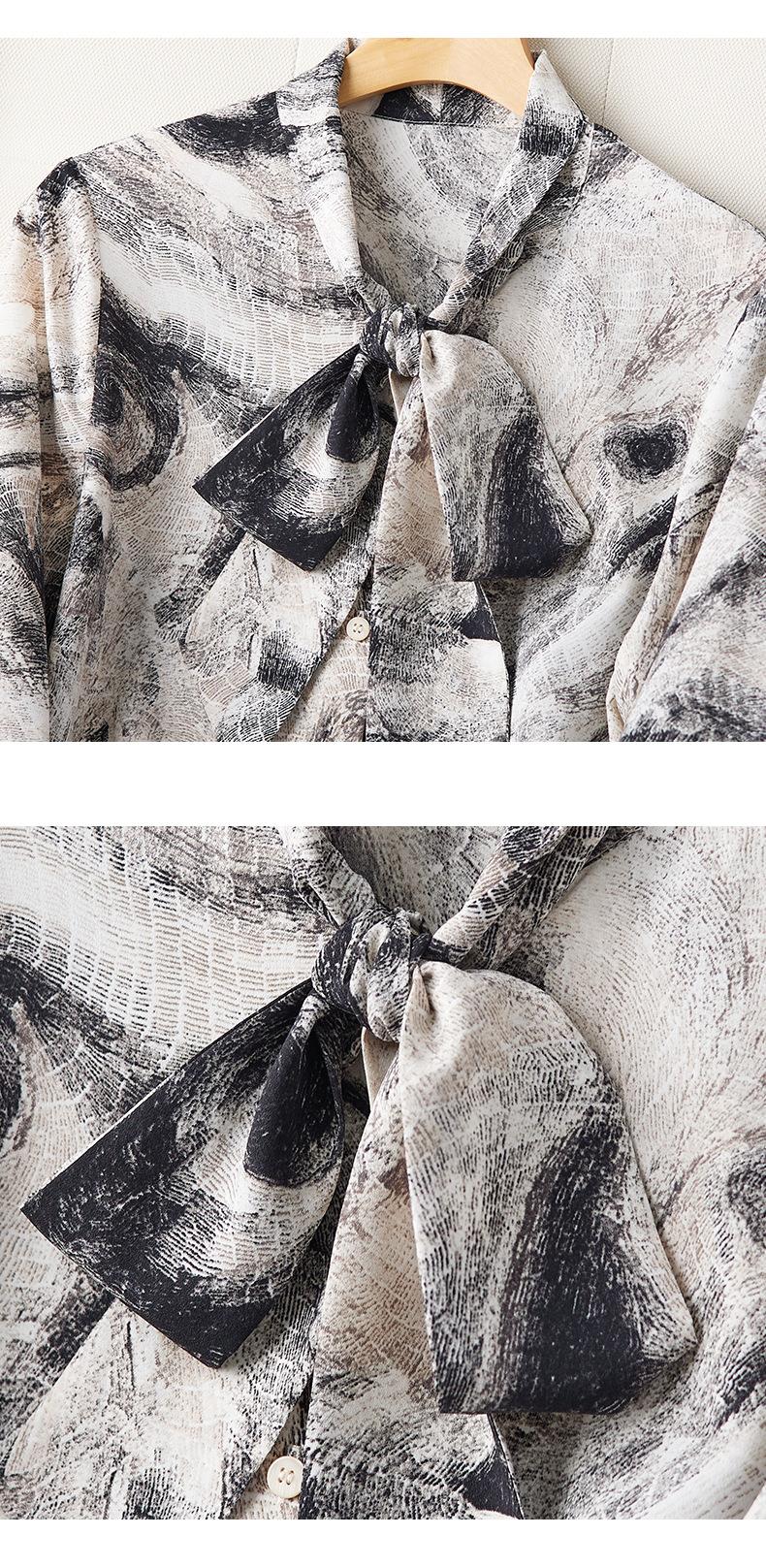 港风2023秋装新款雪纺印花衬衫女长袖系带女士衬衣1890