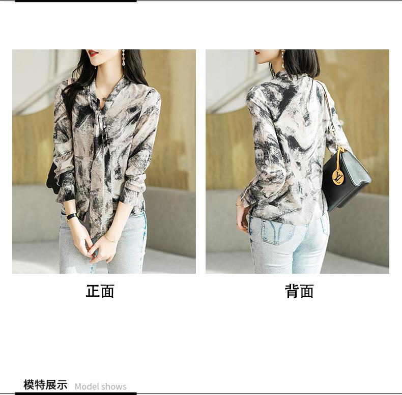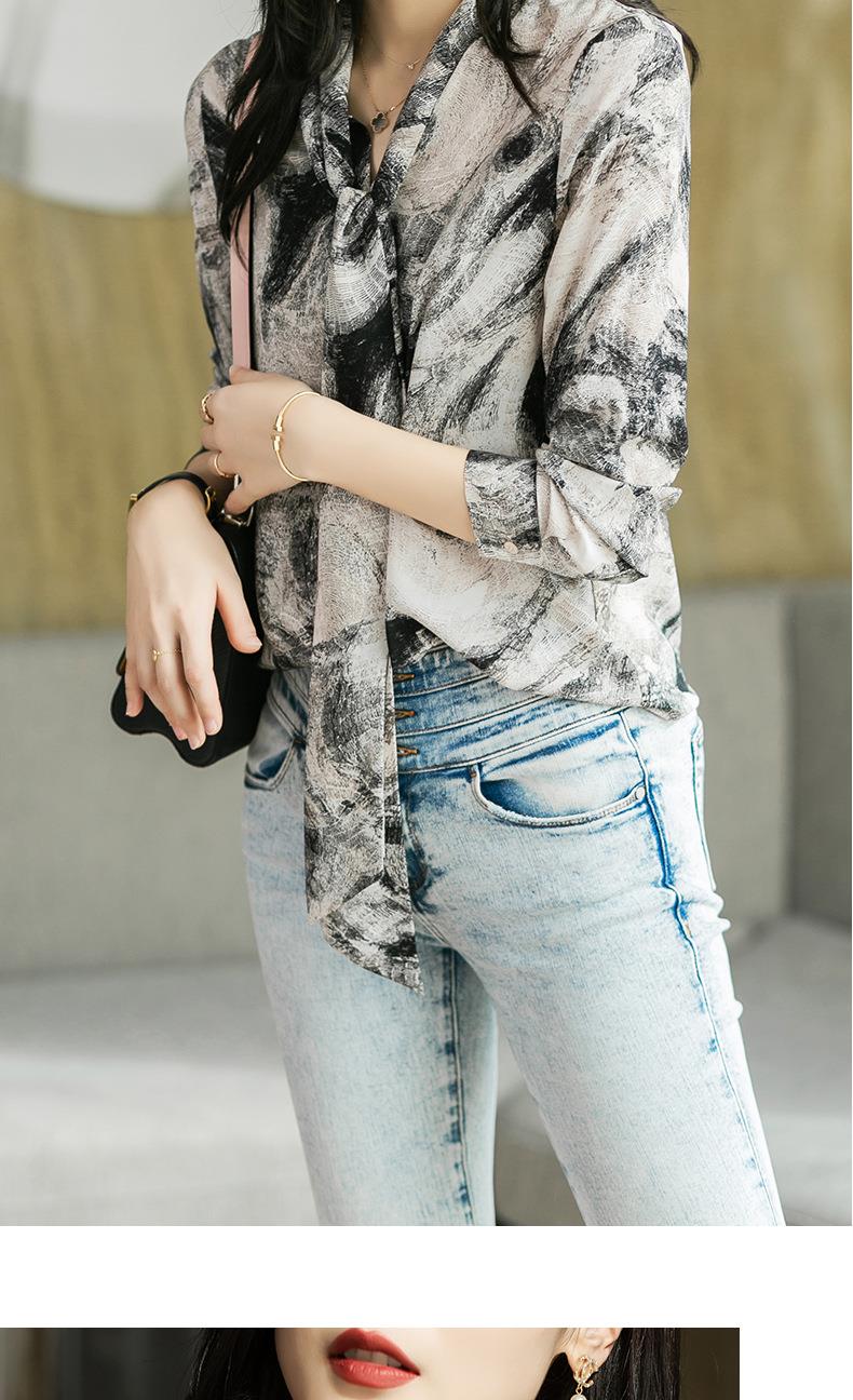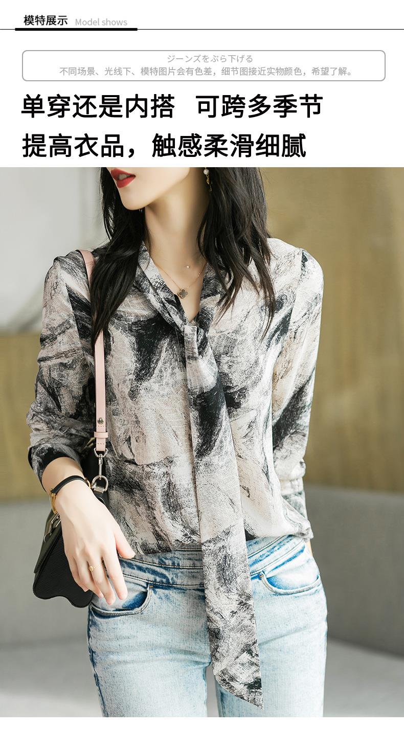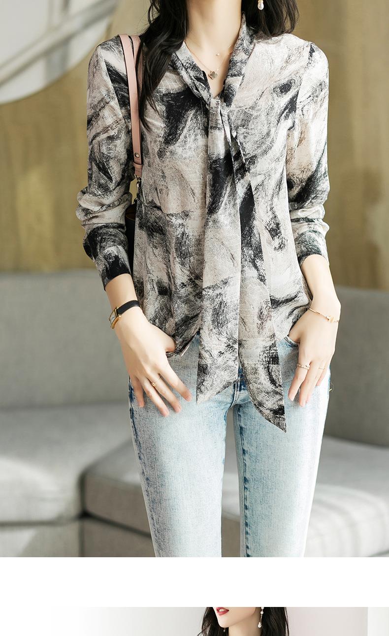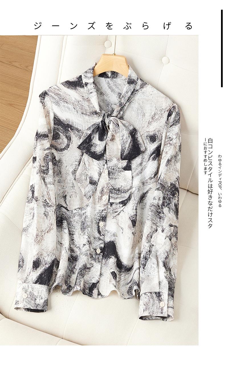 港风2023秋装新款雪纺印花衬衫女长袖系带女士衬衣1890