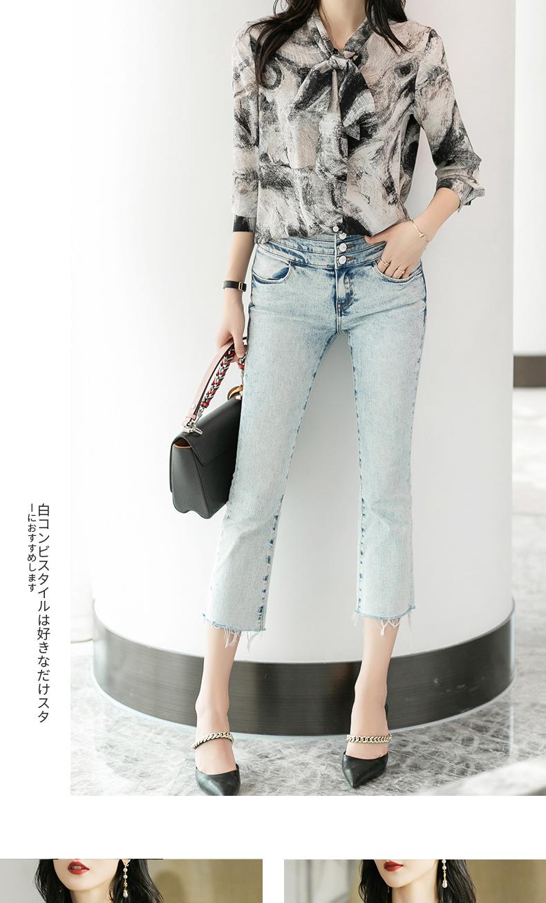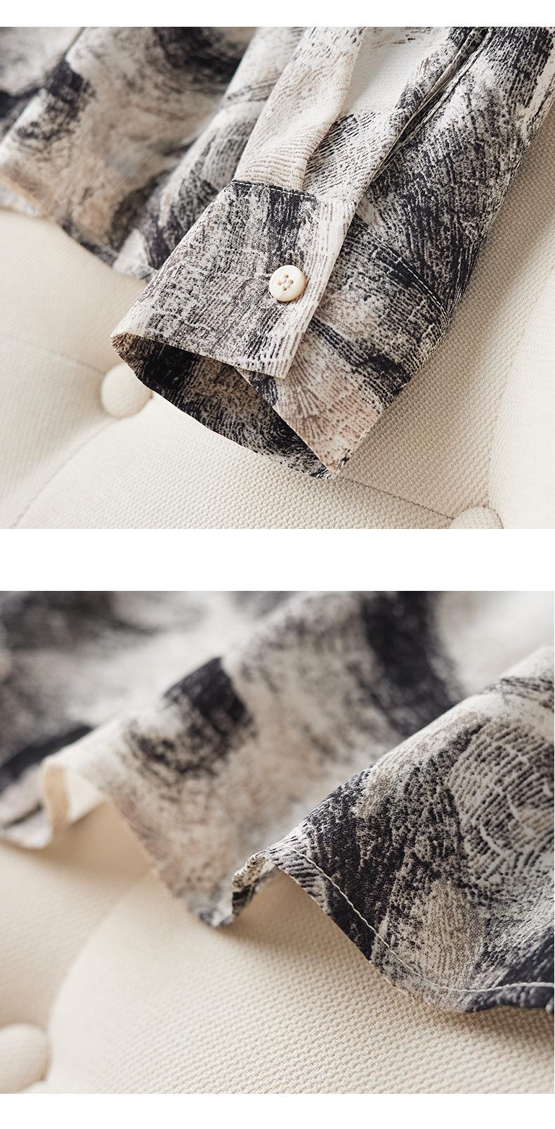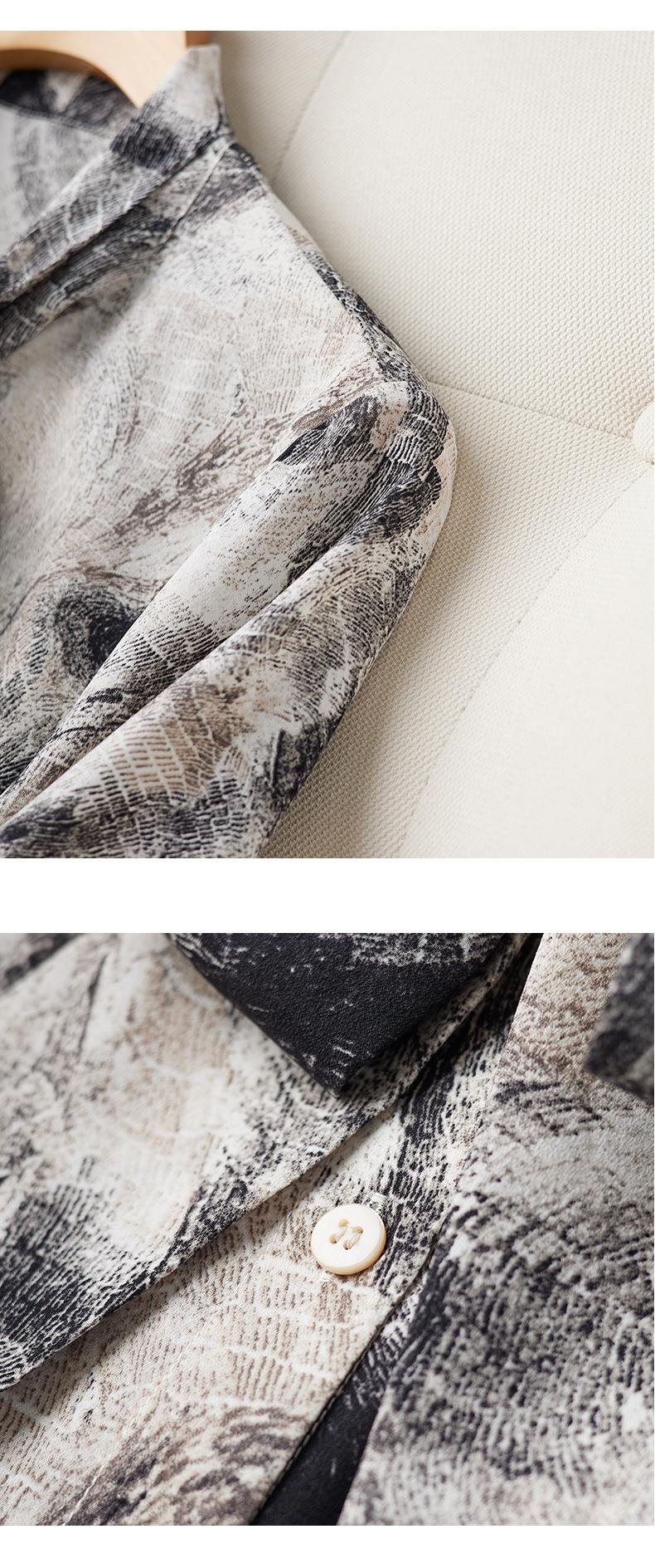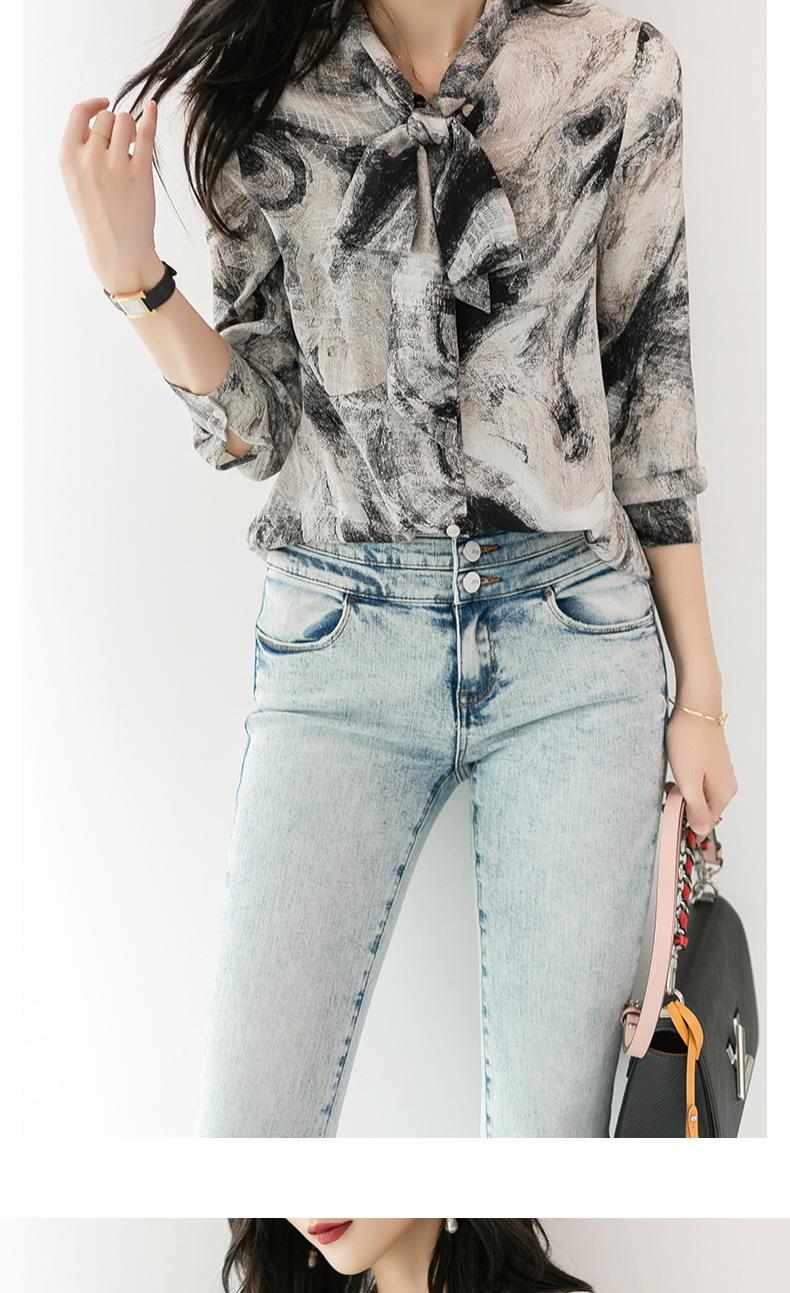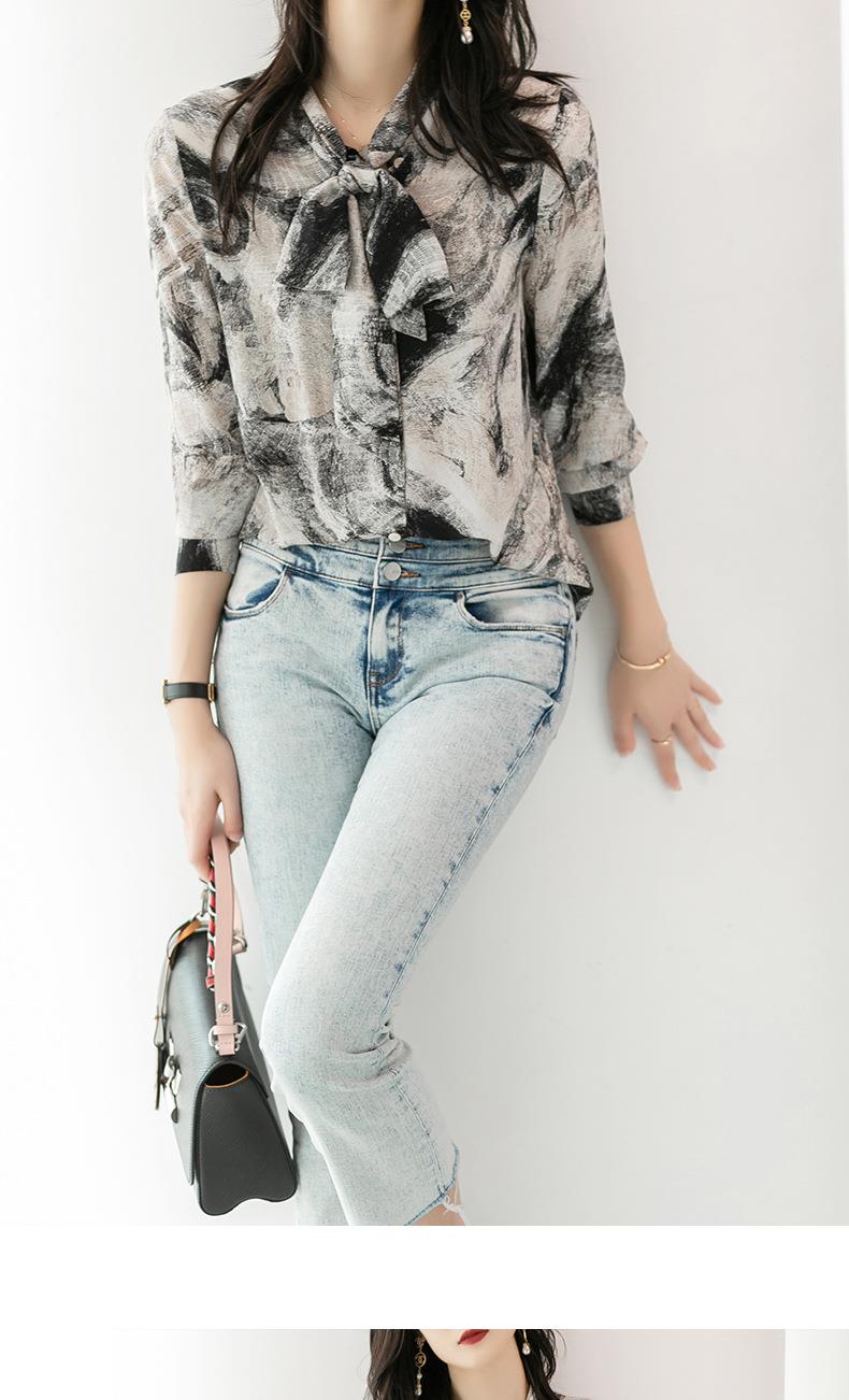 港风2023秋装新款雪纺印花衬衫女长袖系带女士衬衣1890