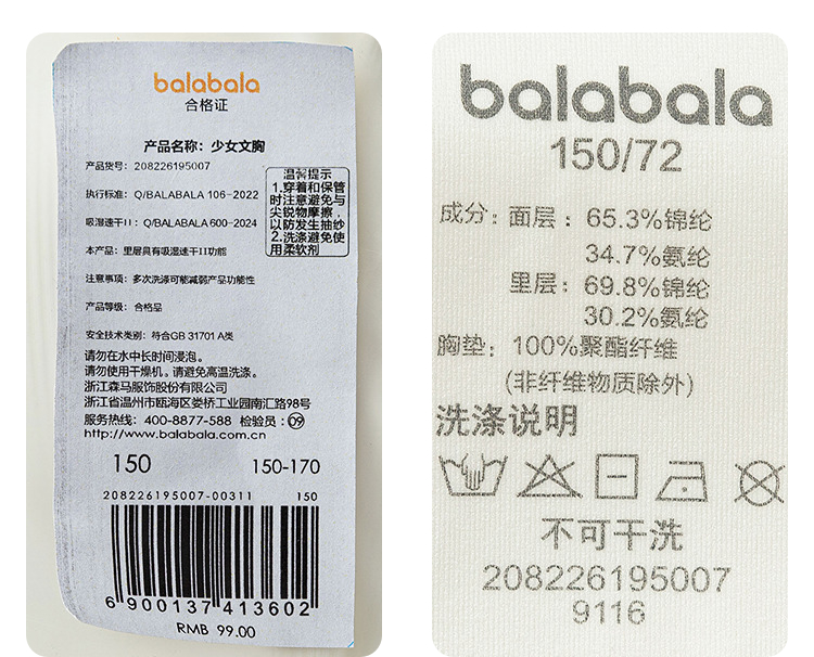 巴拉巴拉女童内衣发育期儿童小背心文胸防凸点防走光提花透气吊带