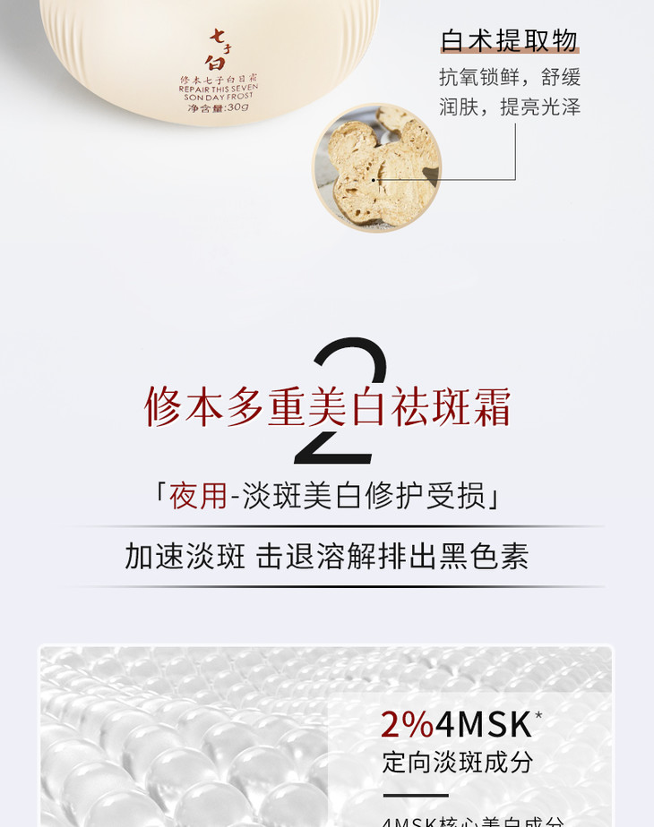 七子膏古方改良 现代科技打造的七子白去斑套装 修本 日霜30g+祛斑霜30g/套