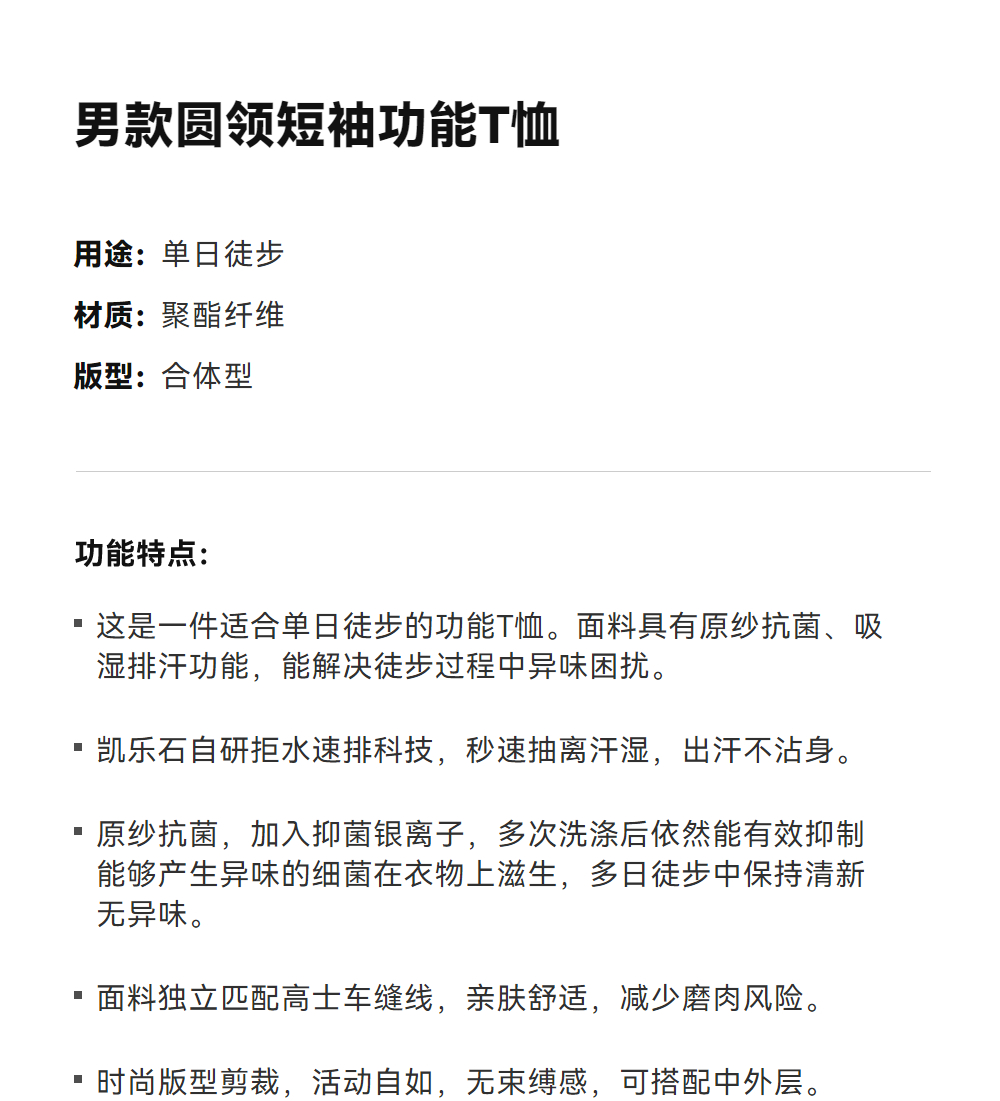 KAILAS凯乐石 男款圆领短袖功能T恤 KG2617154