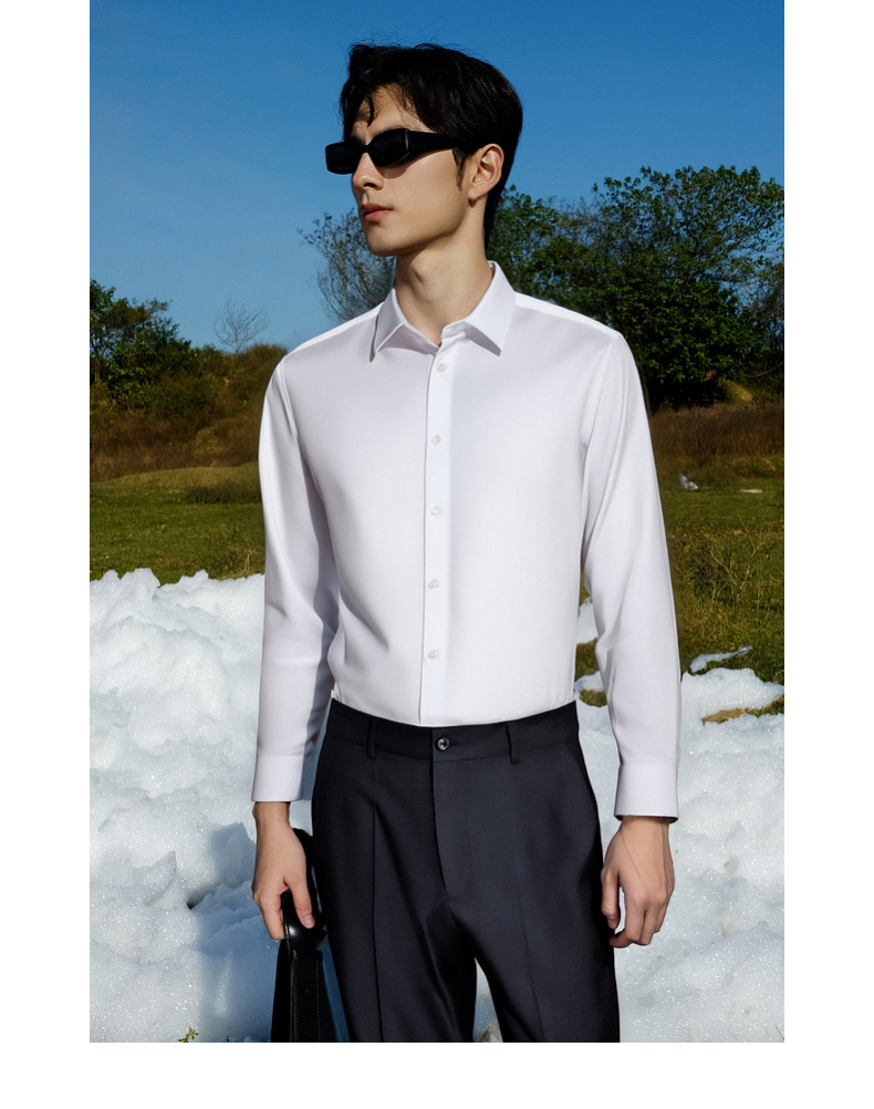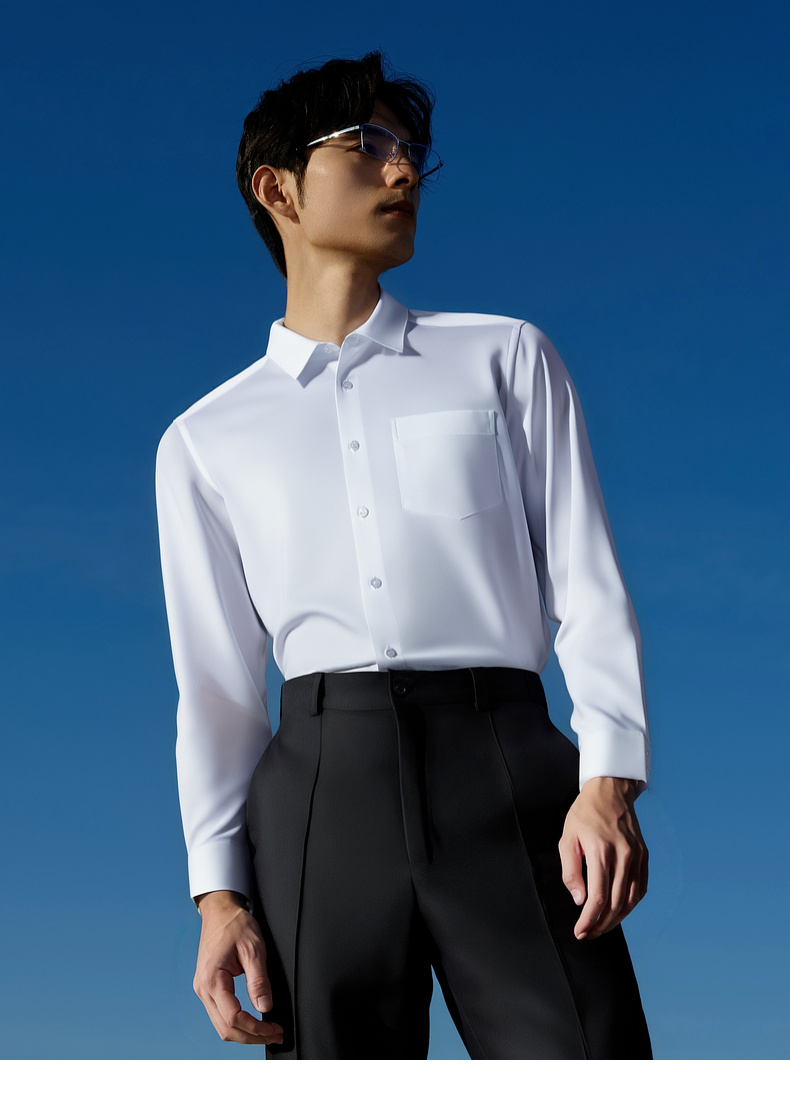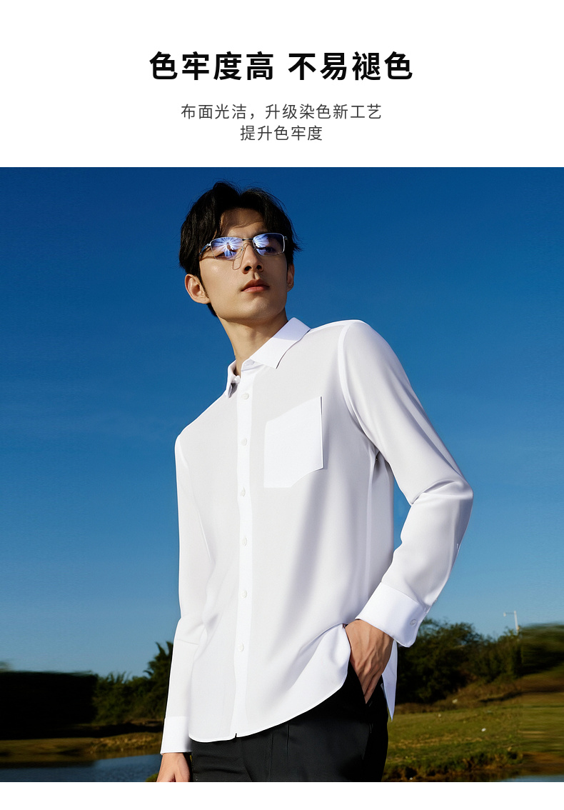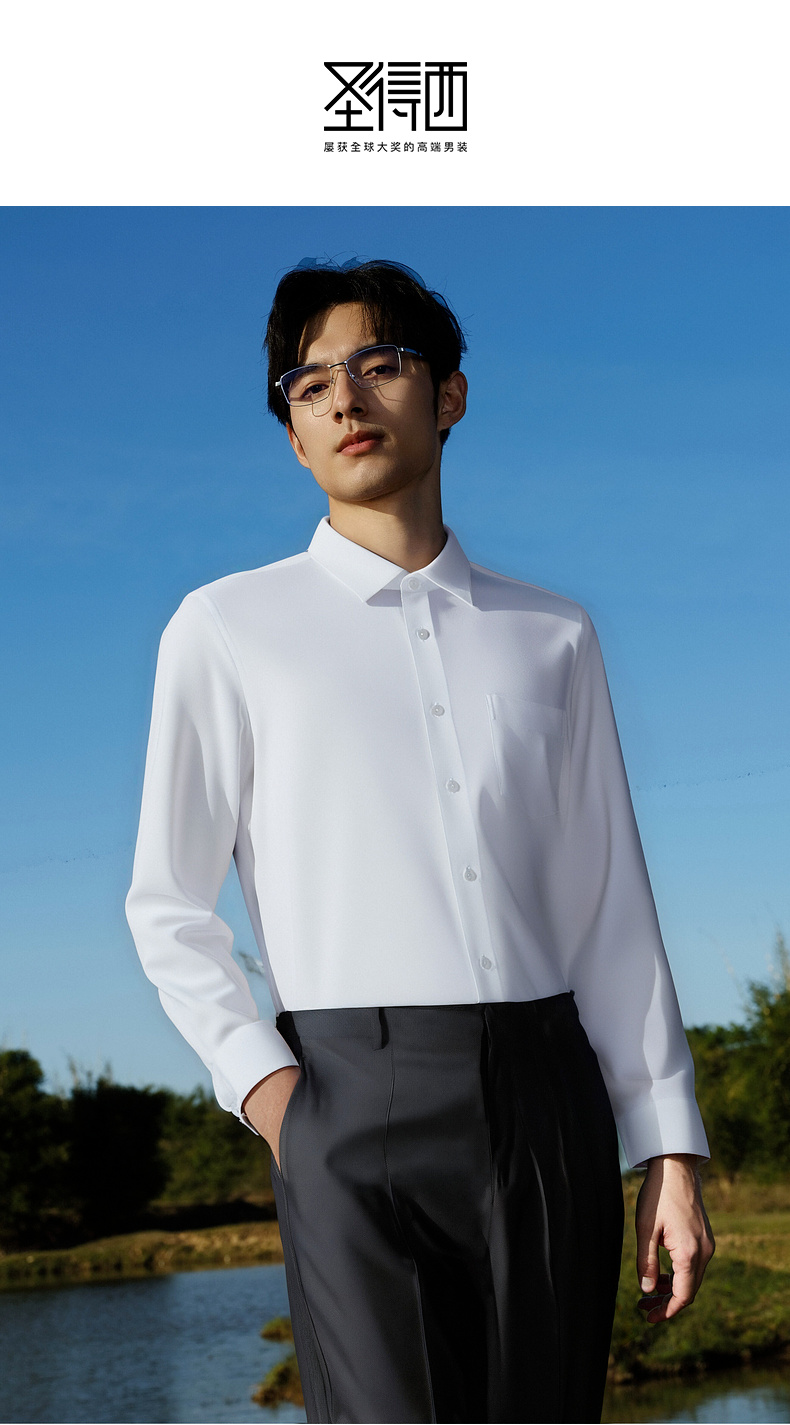 圣得西男士长袖衬衫商务休闲通勤透气经典易搭白色简约男装上衣2512952001A