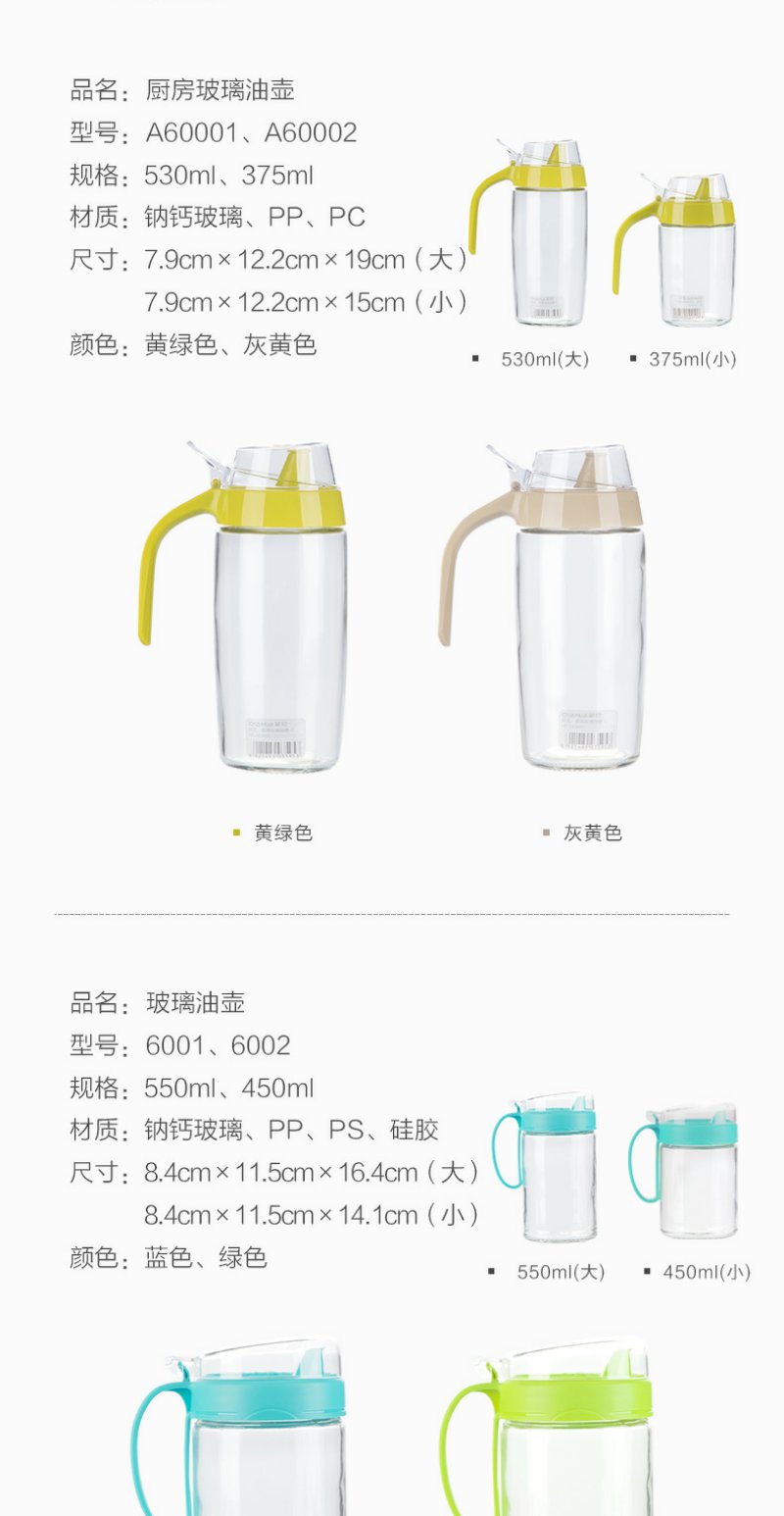 【茶花】钠钙玻璃油壶不挂油不漏油550ml