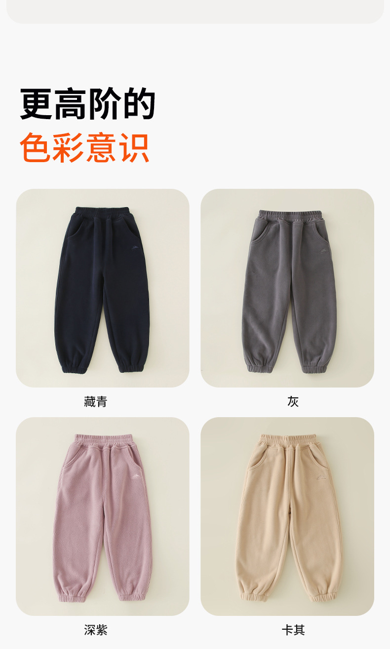 儿童摇粒绒卫裤男女童休闲运动裤双面绒裤束脚秋冬新款长裤中大宝
