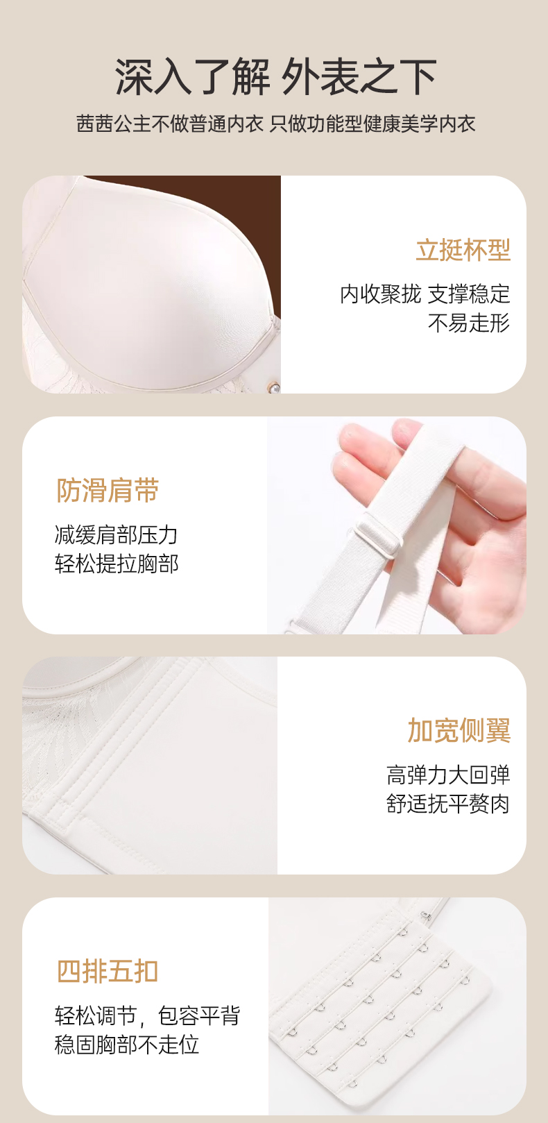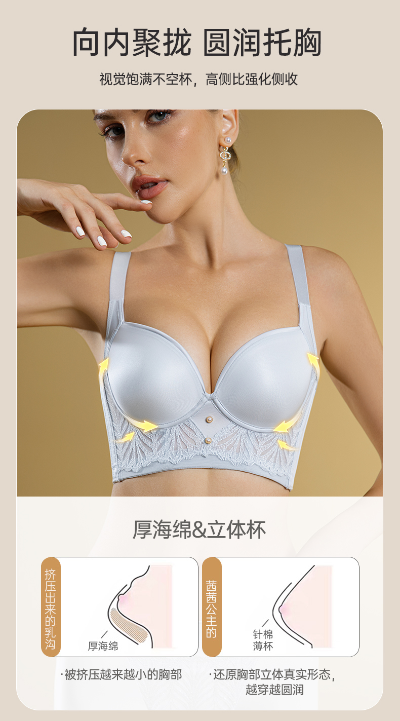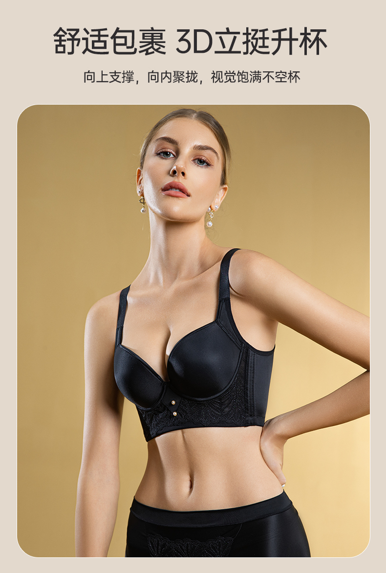 轻奢法式调整型文胸 软钢圈聚拢 柔软承托不下垂 夹棉薄杯 感温记忆3D立体数码印花蕾丝