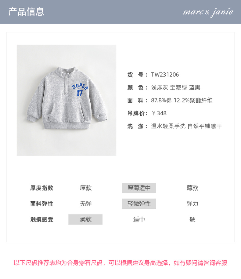 马克珍妮秋装新款 男童学院风半拉链立领运动卫衣 231206