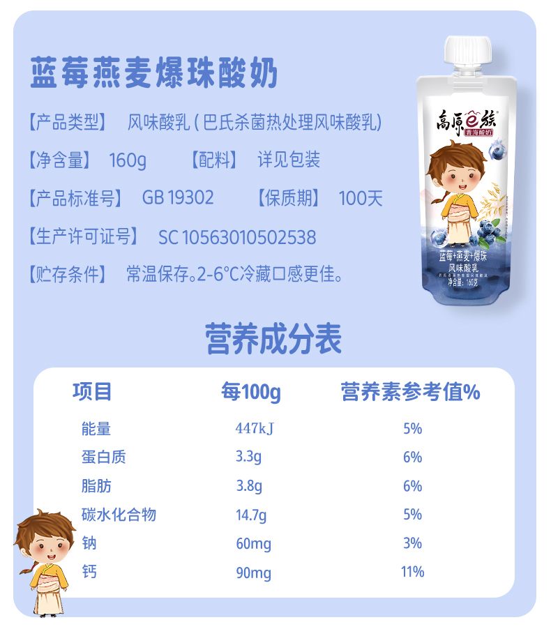 【两口味爆珠】光明&小西牛青海常温酸奶 高原牧场 蓝莓/燕麦+爆珠+燕麦酸奶两种口味160g*10袋*2箱