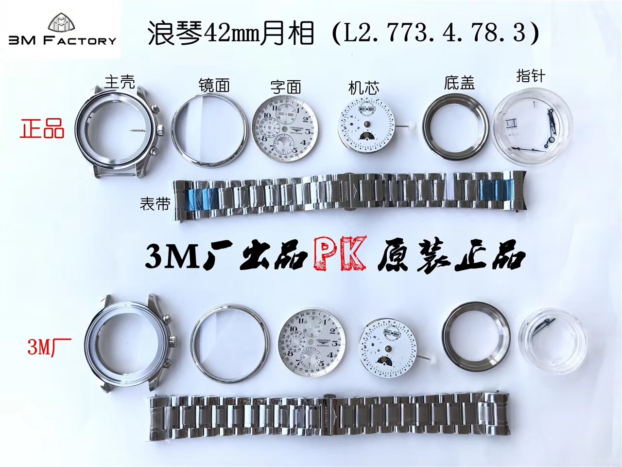 3M浪琴名匠优雅系列42mm大号月相男表,官方型号L2.773.4.78.3(具体型号看颜色搭配),100%原装分解开模生产