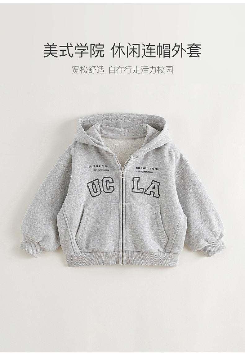 马克珍妮男童美式学院休闲连帽外套儿童卫衣2024年秋装新款241292