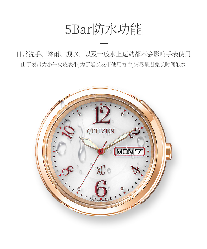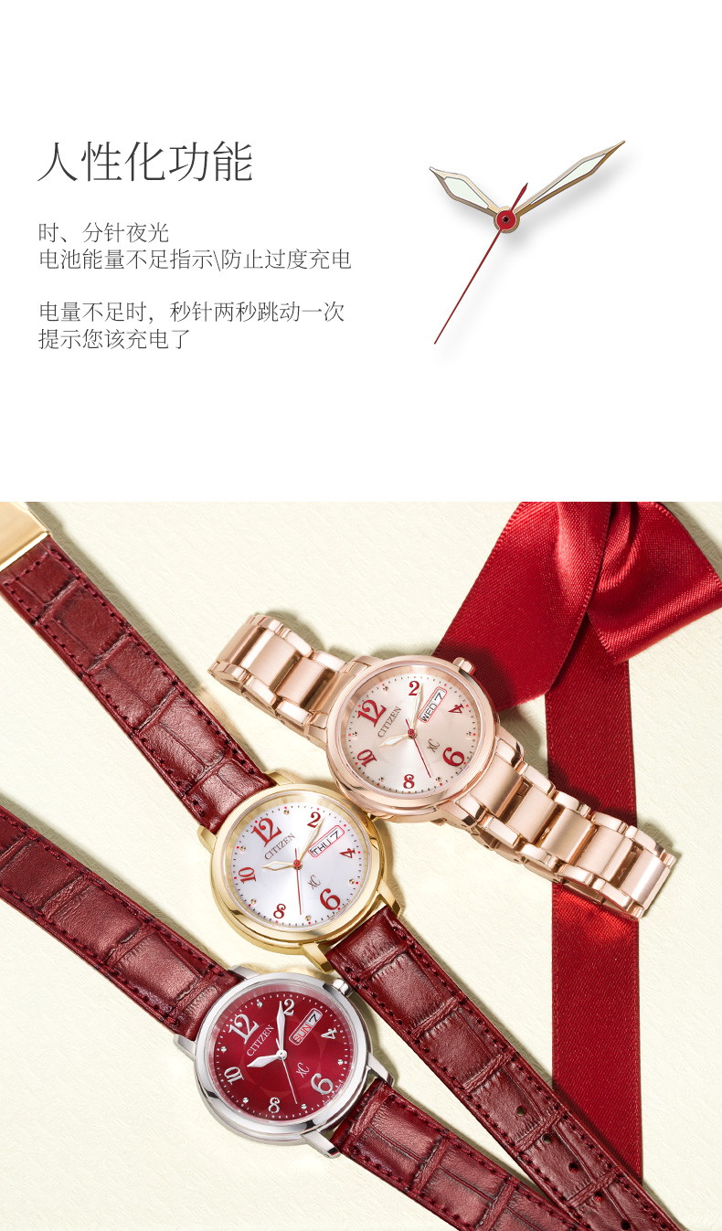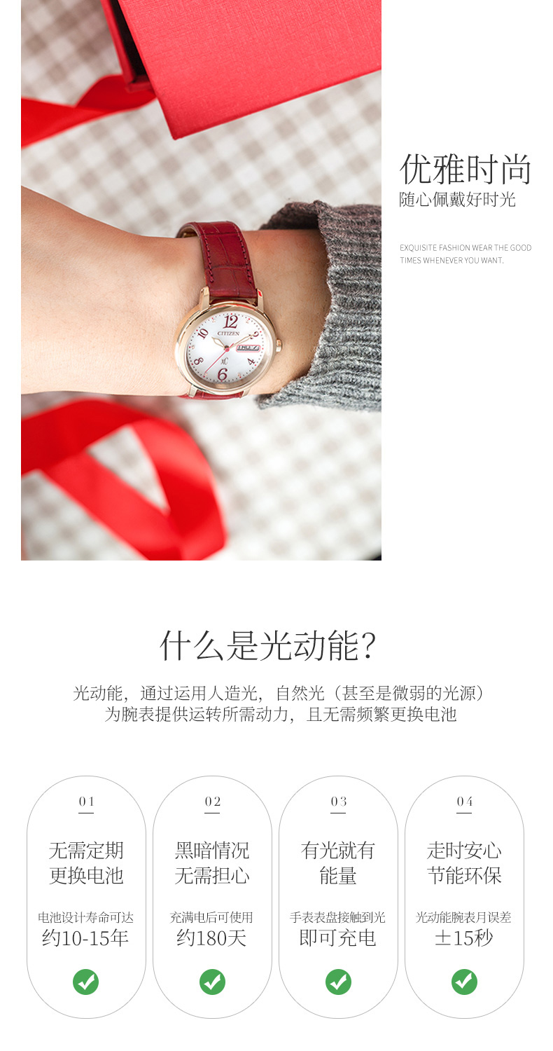 西铁城(CITIZEN)光动能女表不锈钢镀玫瑰金色皮带EW2422-12AB