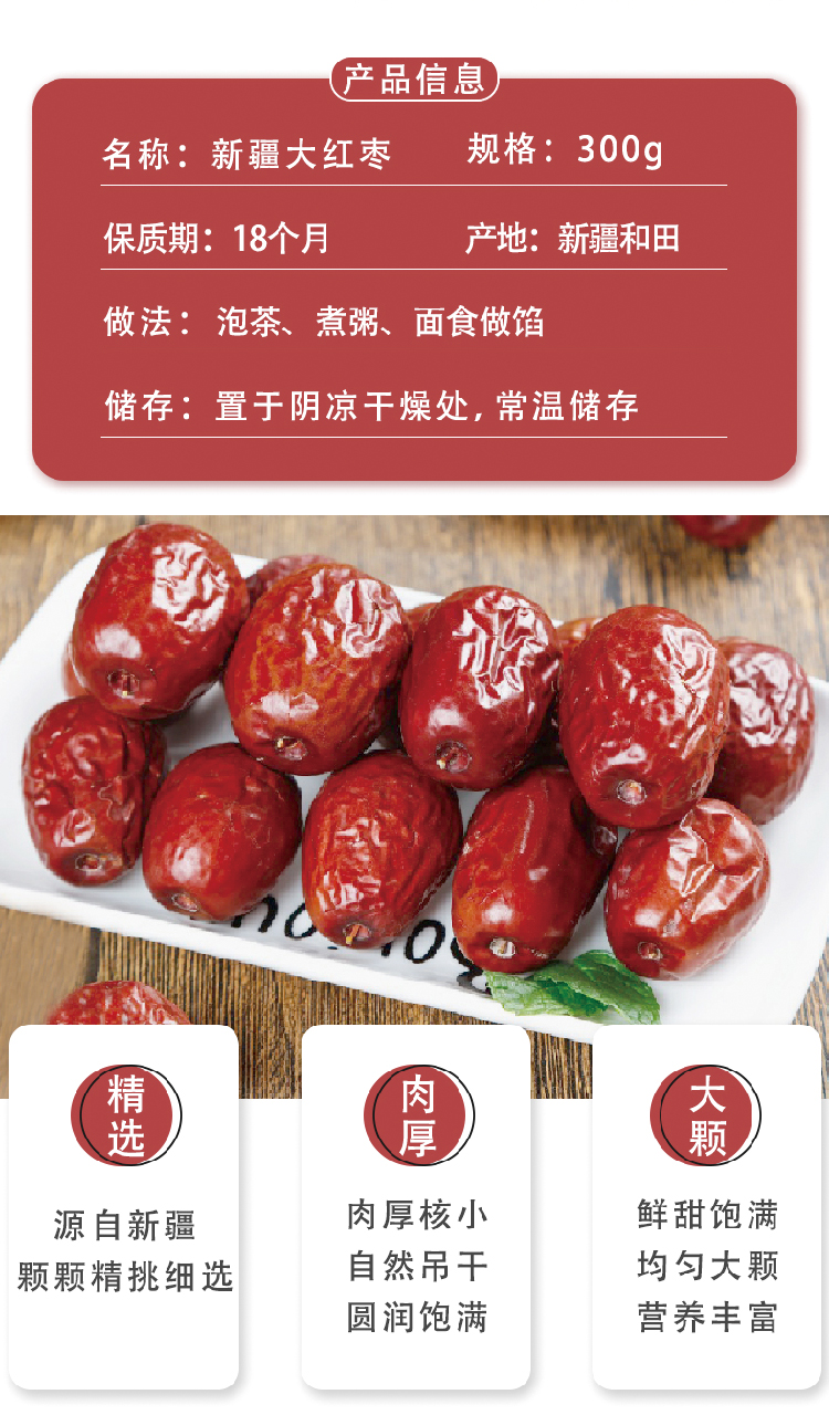 巴山新疆大红枣500g 和田红枣干骏枣零食非免洗新枣特大六星新货 精选新疆大枣