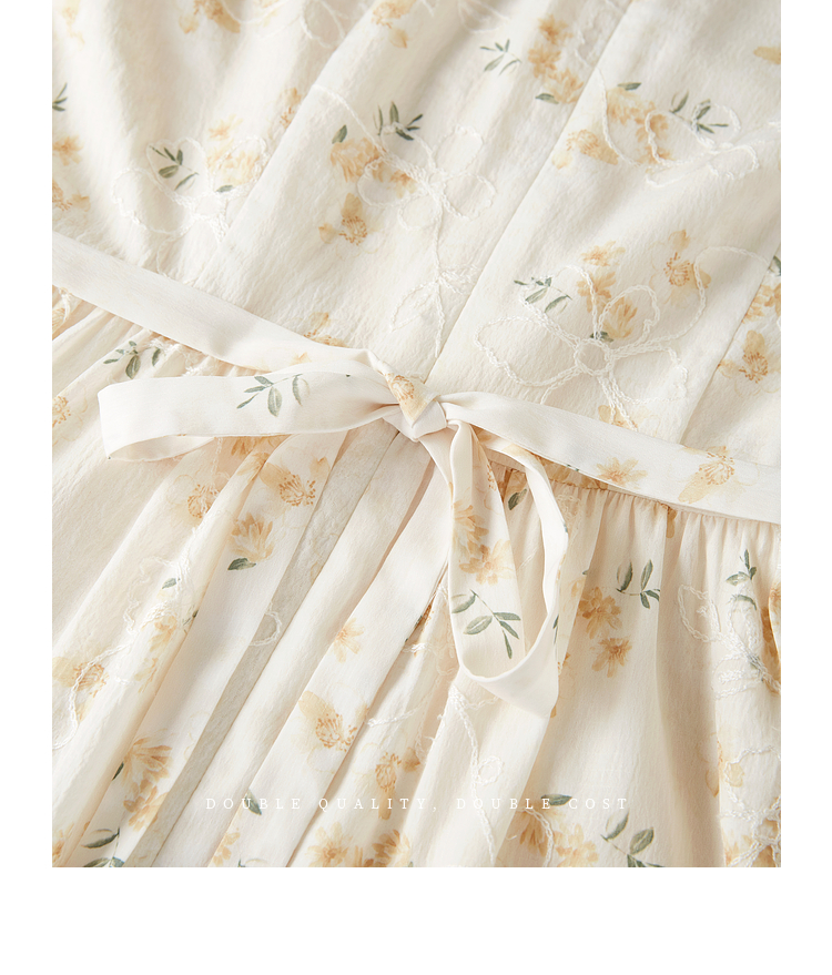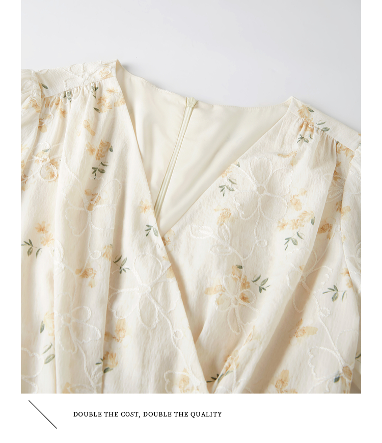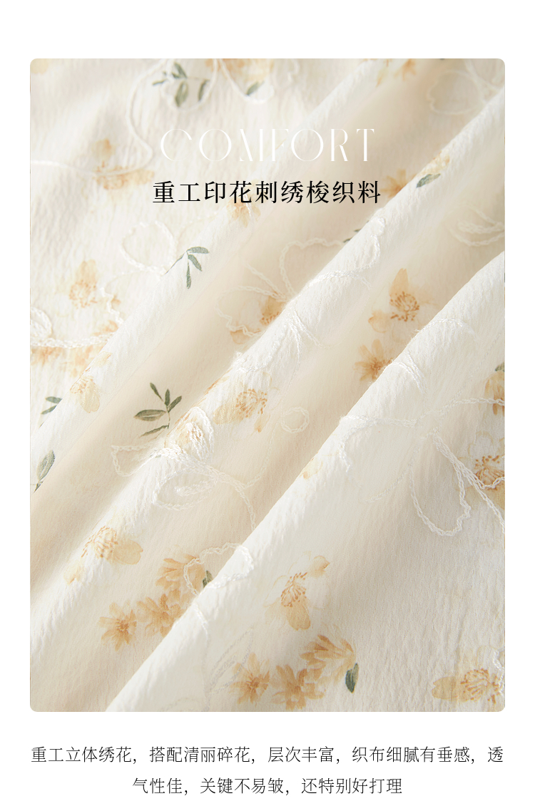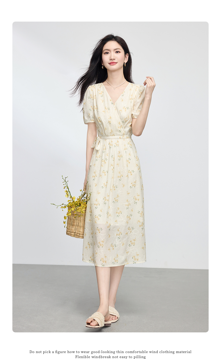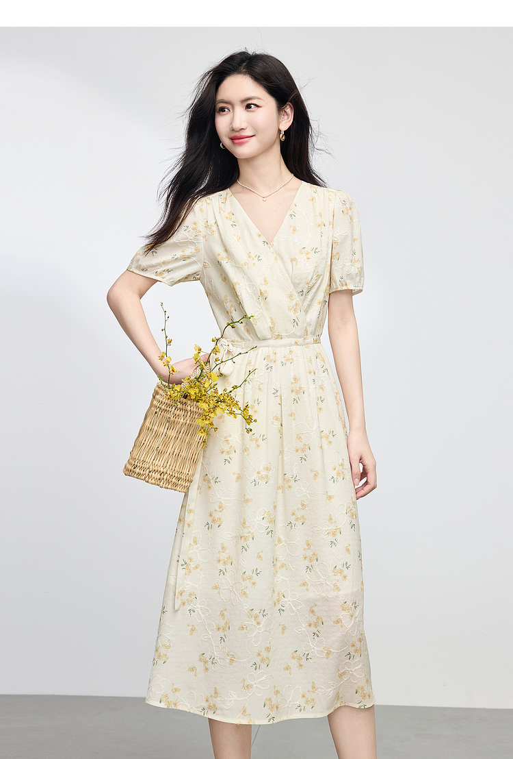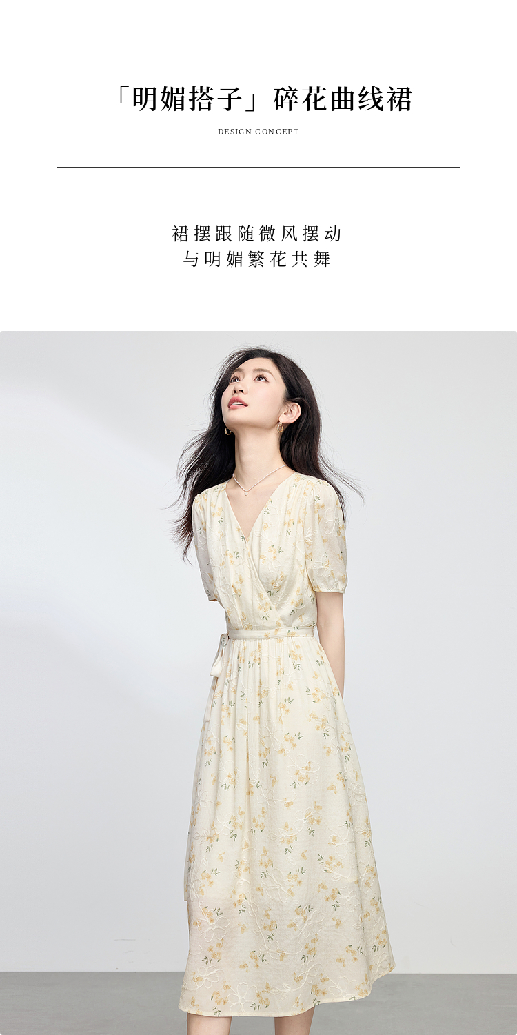 熙世界黄色碎花连衣裙女2025年夏季新款法式收腰V领茶歇绝美裙子
