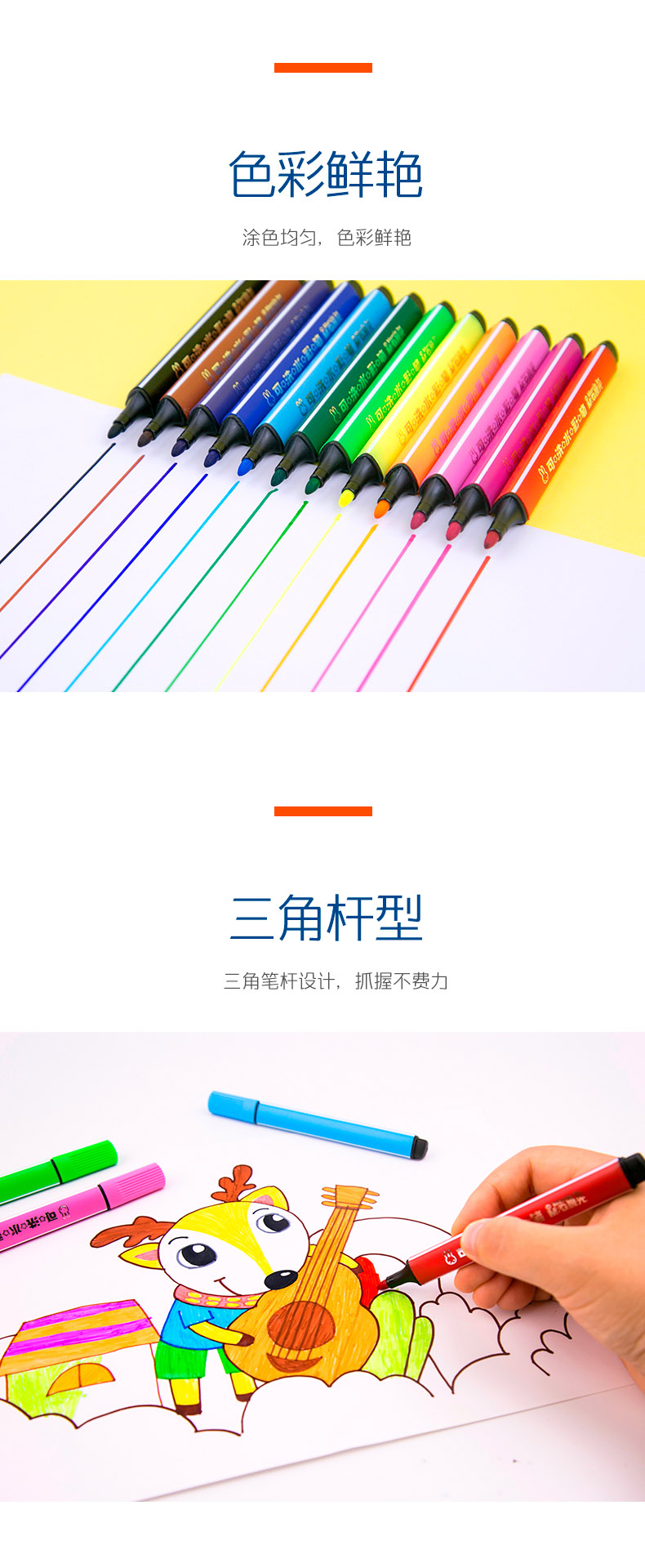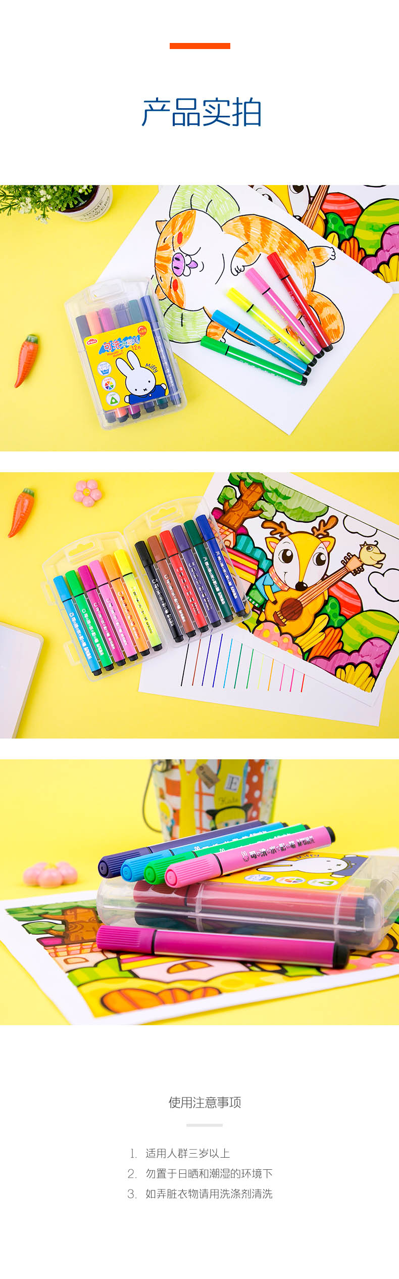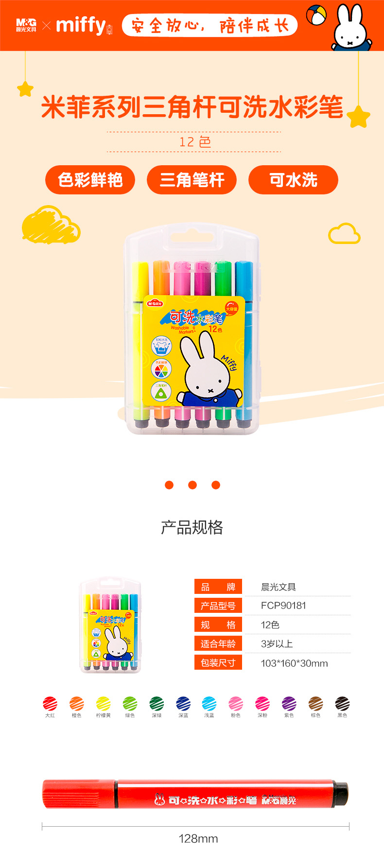晨光(M&G)文具12色三角杆水彩笔 可水洗绘画彩笔 米菲系列儿童涂鸦画笔 12支/盒FCP90181