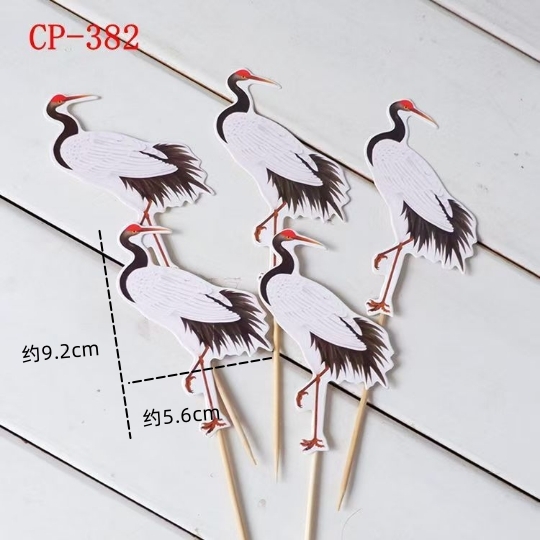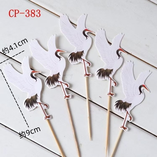 5支装 竹签纸插件 仙鹤/寿桃/不老松 长辈祝寿系列装饰插件