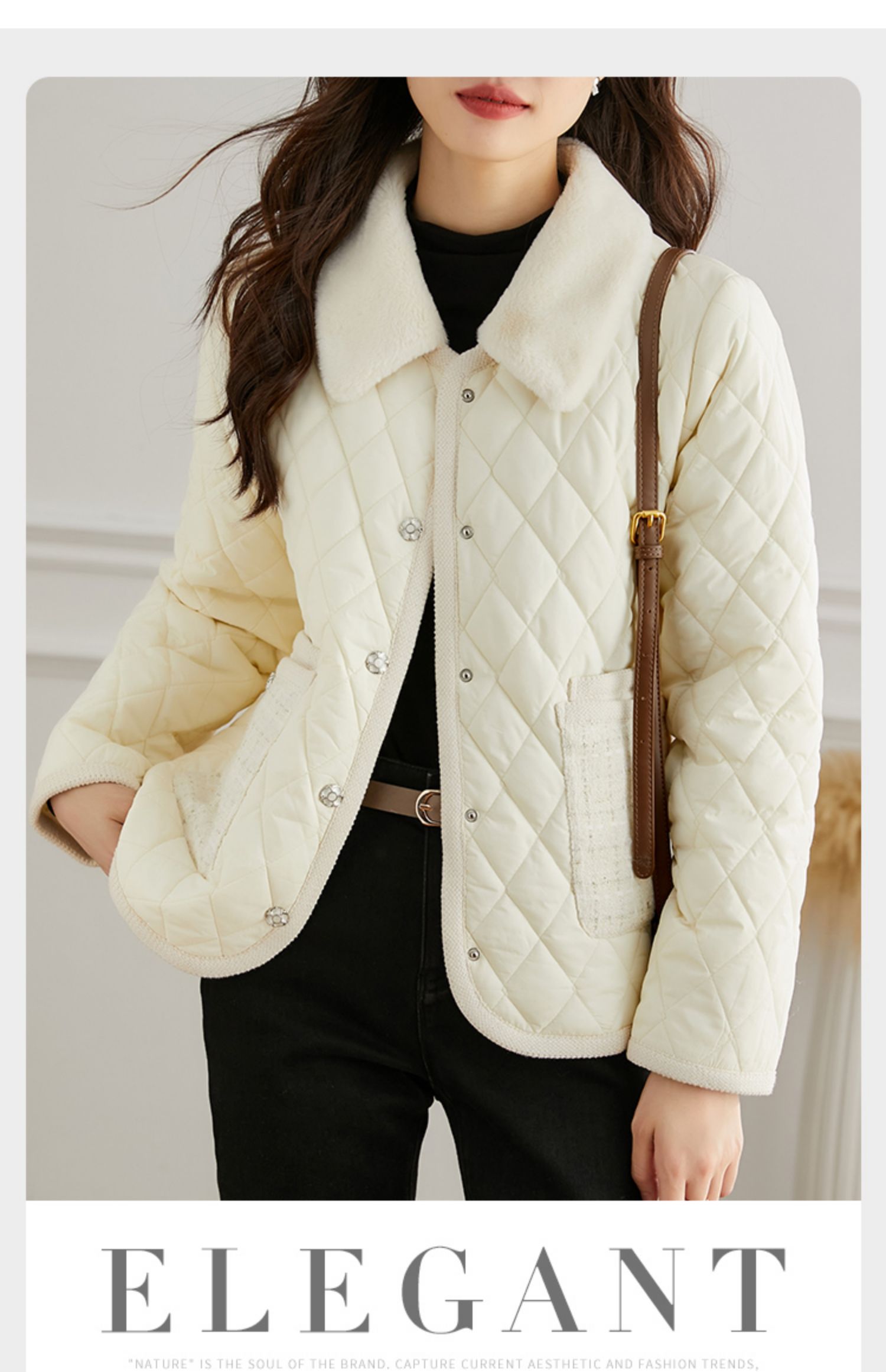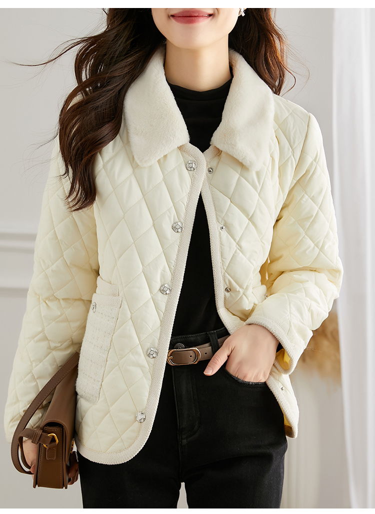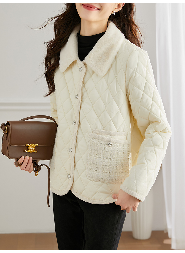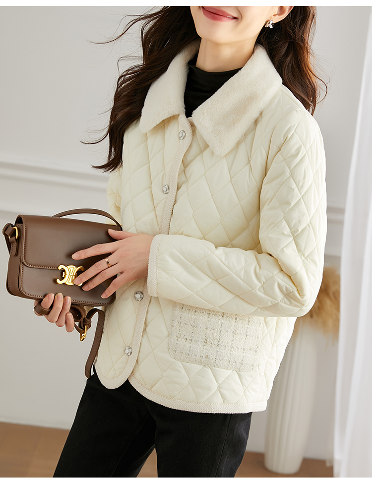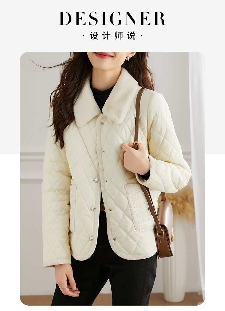【断码清仓】熙世界气质名媛风棉衣外套女冬年新款法式羊羔毛翻领保暖棉服