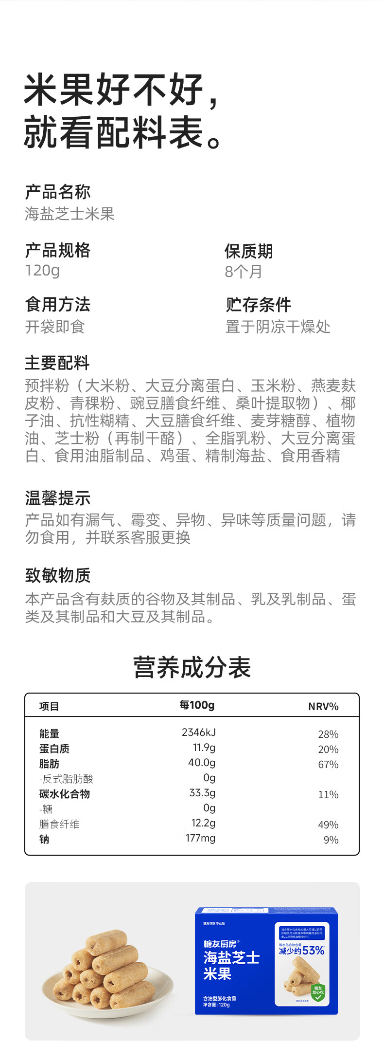【分仓直发包邮】糖友厨房海盐芝士米果120g*3盒