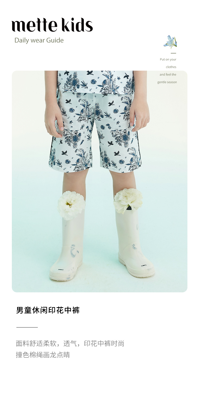 mettekids男童短裤2022夏季新款炸街韩版洋气儿童印花五分裤裤子