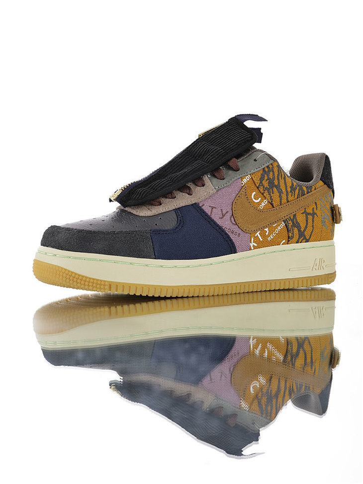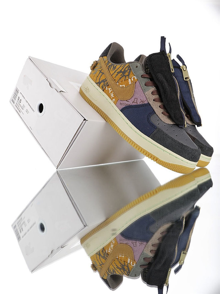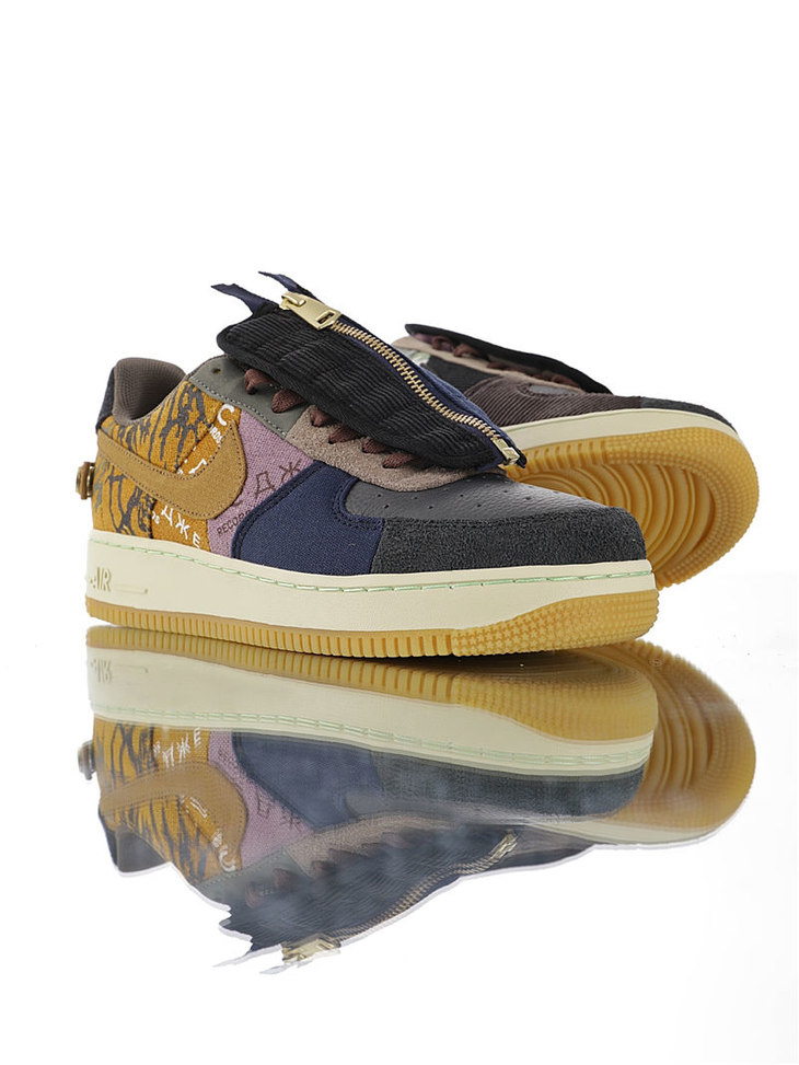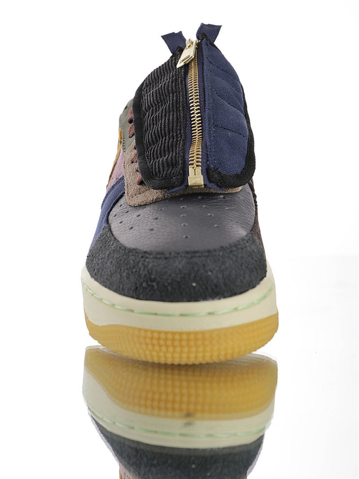 耐克Travis Scott X Nike Air Force 1 Low Zipper 斯科特联乘 多块原厂面料拼接 可拆卸设计拉链装置 空军一号 拼接棕黄夜蓝黑