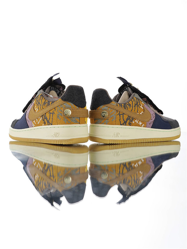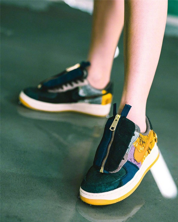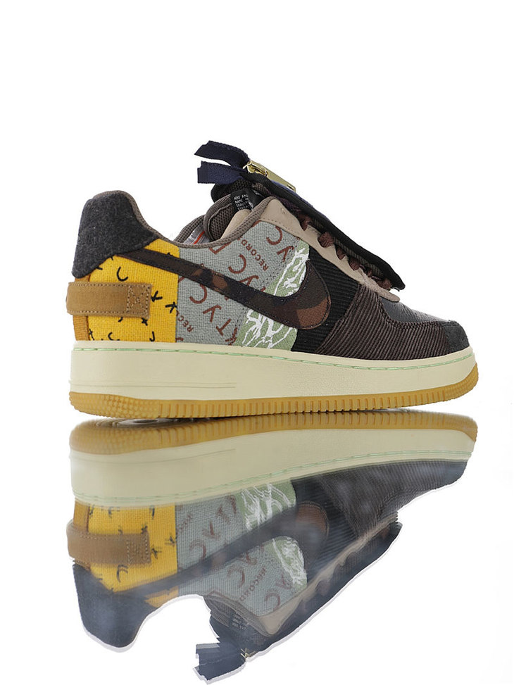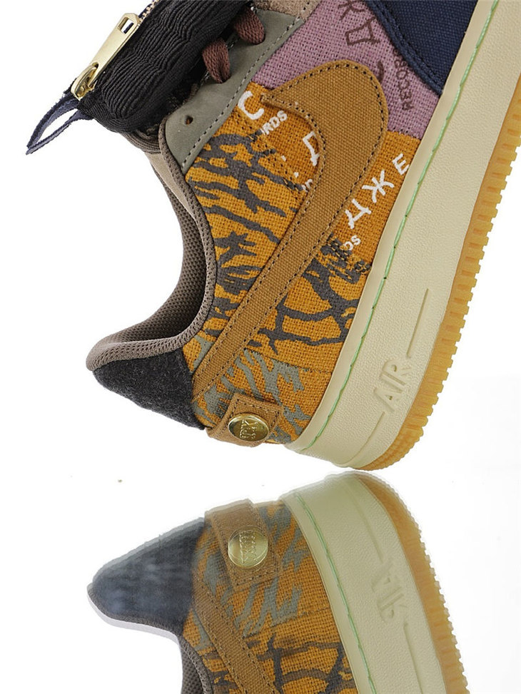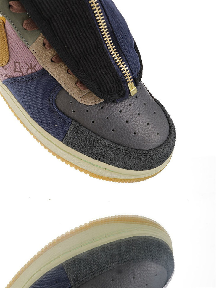 耐克Travis Scott X Nike Air Force 1 Low Zipper 斯科特联乘 多块原厂面料拼接 可拆卸设计拉链装置 空军一号 拼接棕黄夜蓝黑