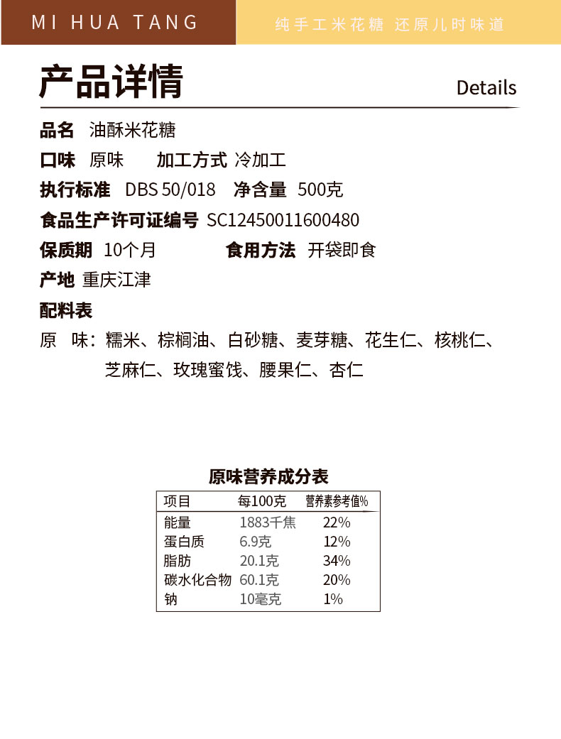 重庆江津特产隐涵独立包装 休闲零食 早餐 500g油酥米花糖
