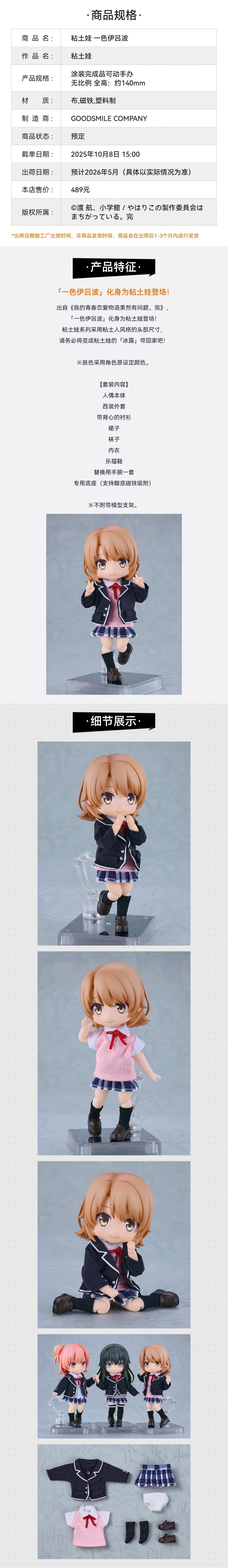 【GSC预售定金】粘土娃 一色伊吕波 我的青春恋爱物语果然有问题。完