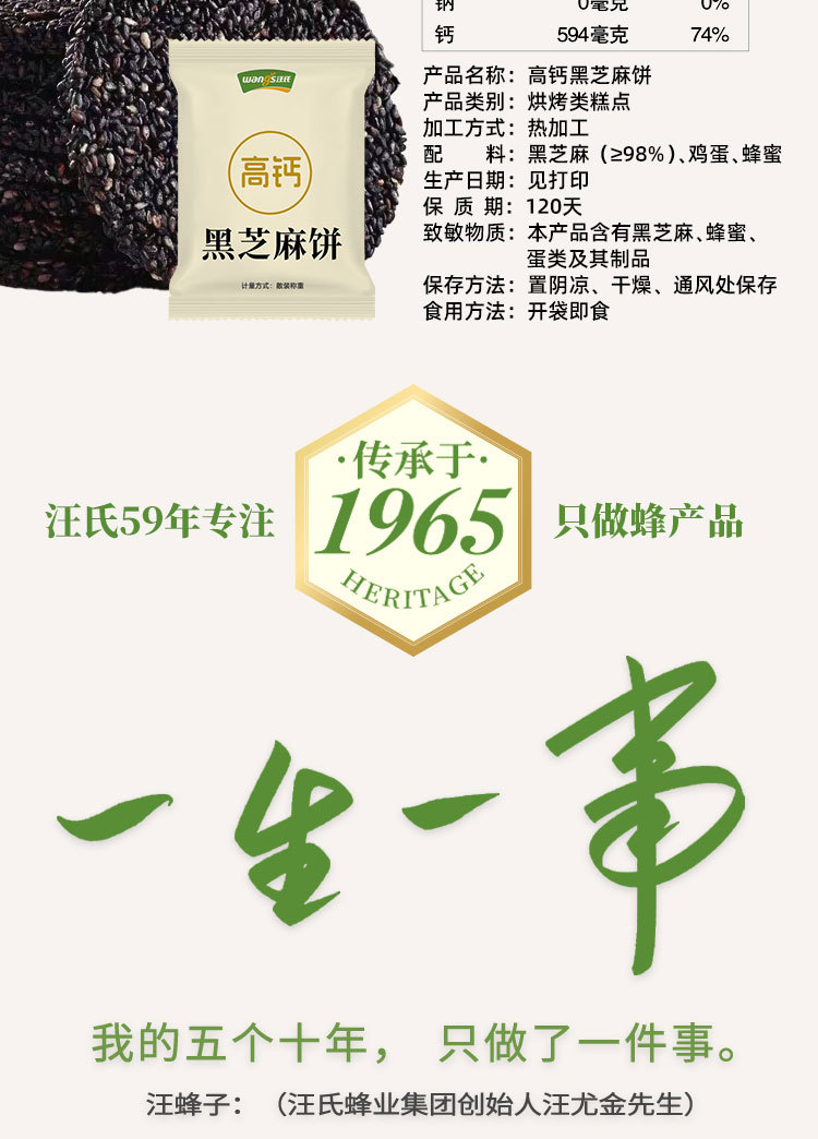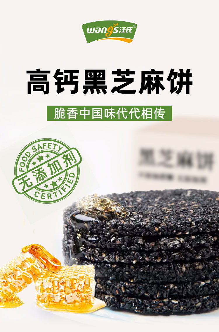 【一箱50包】汪氏甄选高钙黑芝麻早餐男女老少零食蜂蜜饼干不添加蔗糖