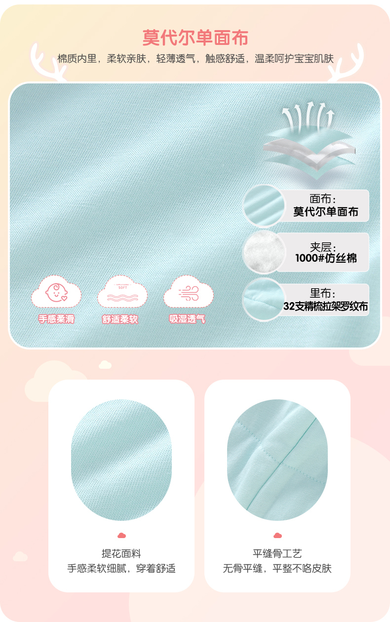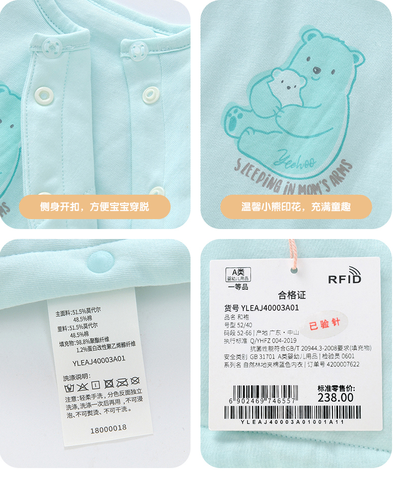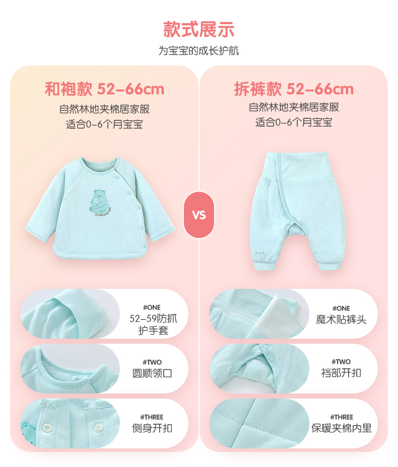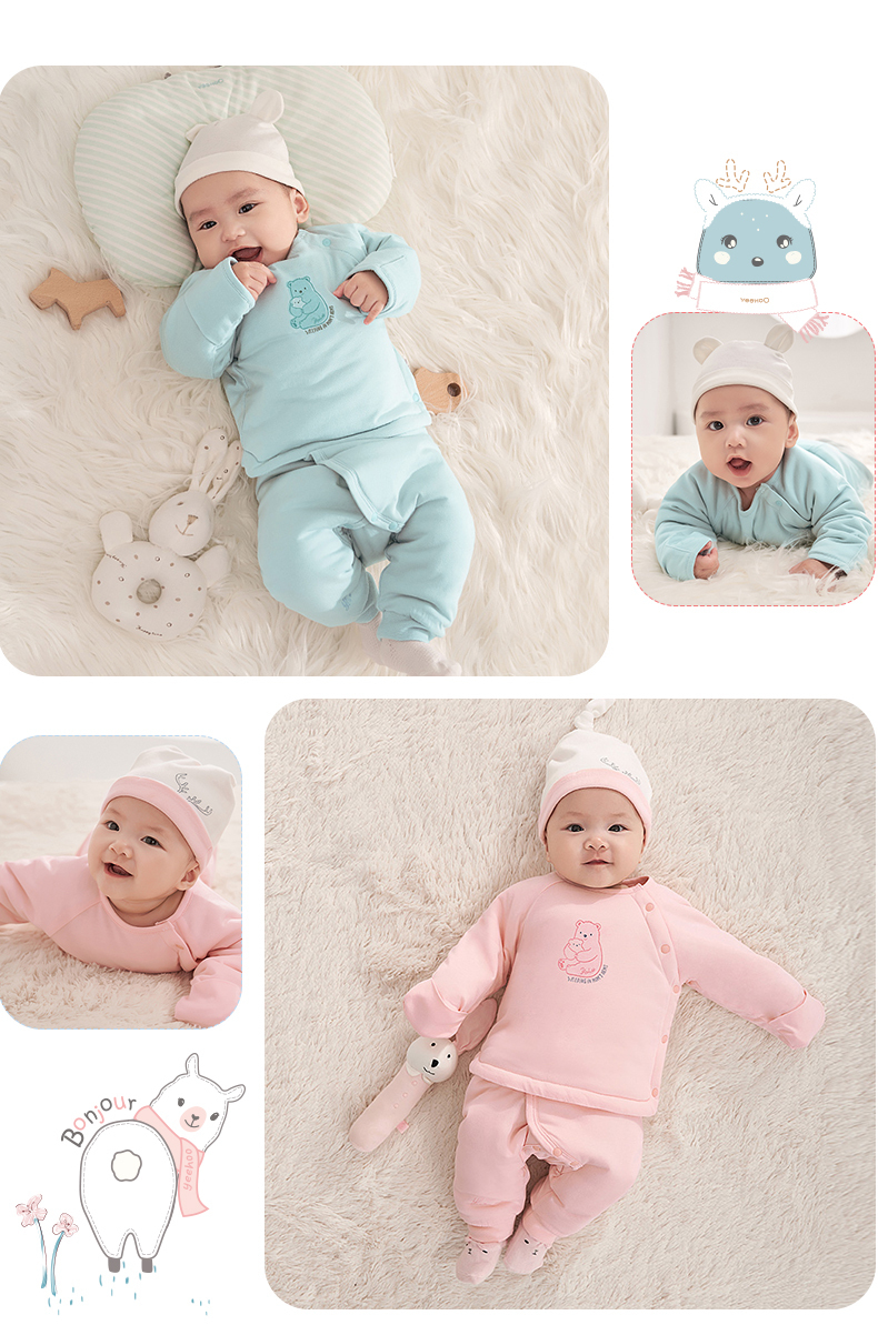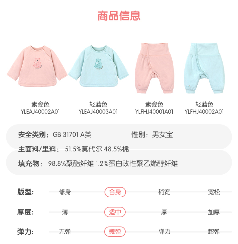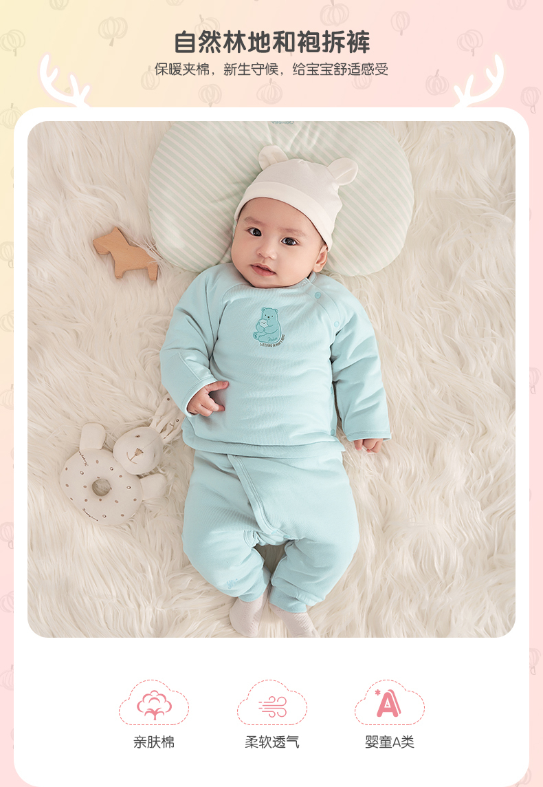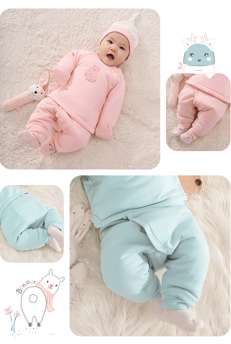 英氏婴儿宝宝蓝粉莫代尔夹棉和袍扣裤YLEAJ40002A01 YLEAJ40003A01